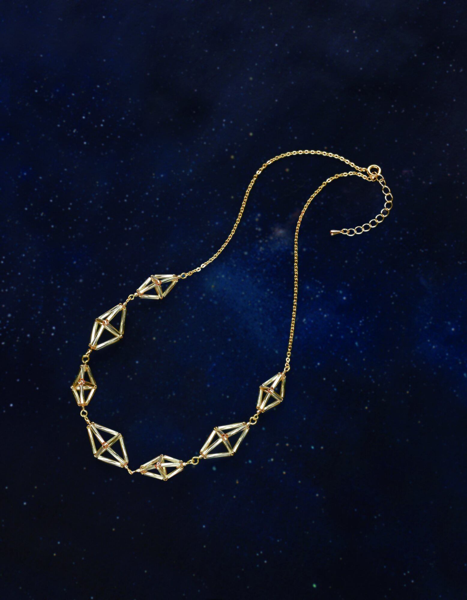 ヒンメリで定番の立方体をチェーンのようにつなげたシンプルなネックレス。