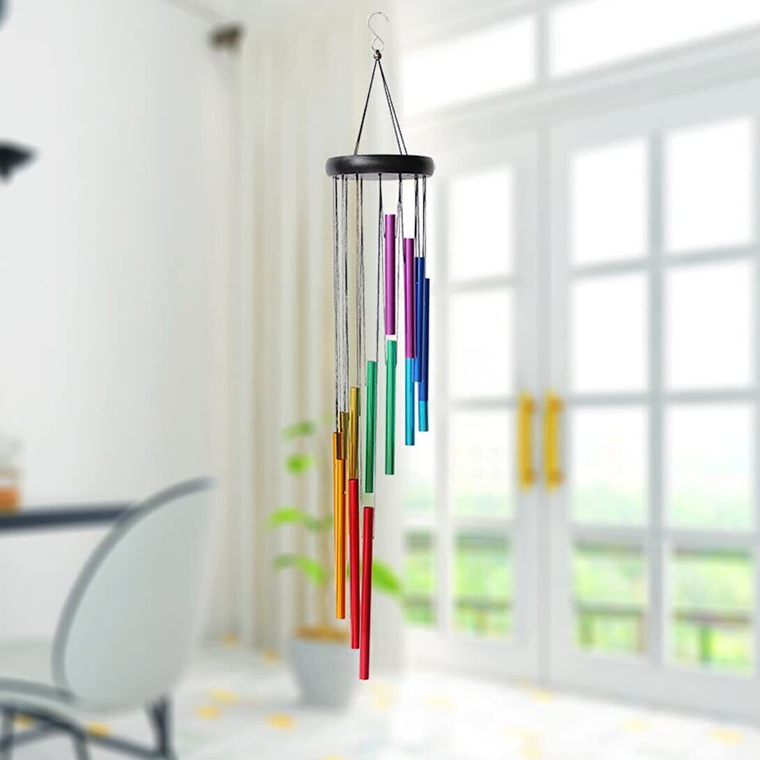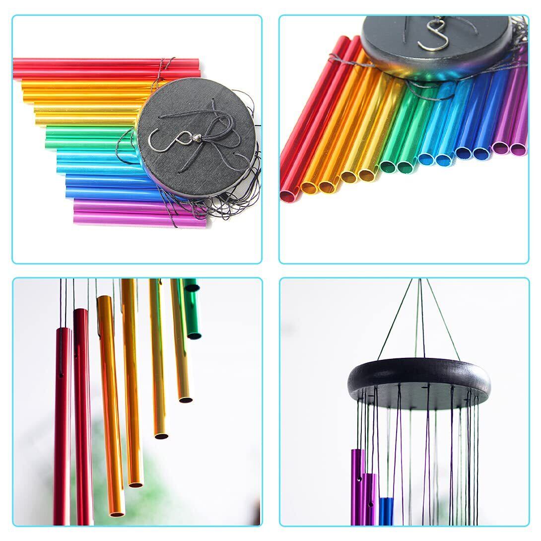 Koonafy 虹色 ウィンドチャイム レーンボー色 2種類 多彩14本チューブ 6本チューブ 和風 ショップの装飾 ギフト チャイム ドアチャイム 屋外 屋内 インテリア アルミ製 ウィンドベル 美しい音色 雰囲気作り 寝室 玄関 バルコニー 飾り用品 御守り 玄関風鈴 (A虹色14本チューブ) | BASE SHOP