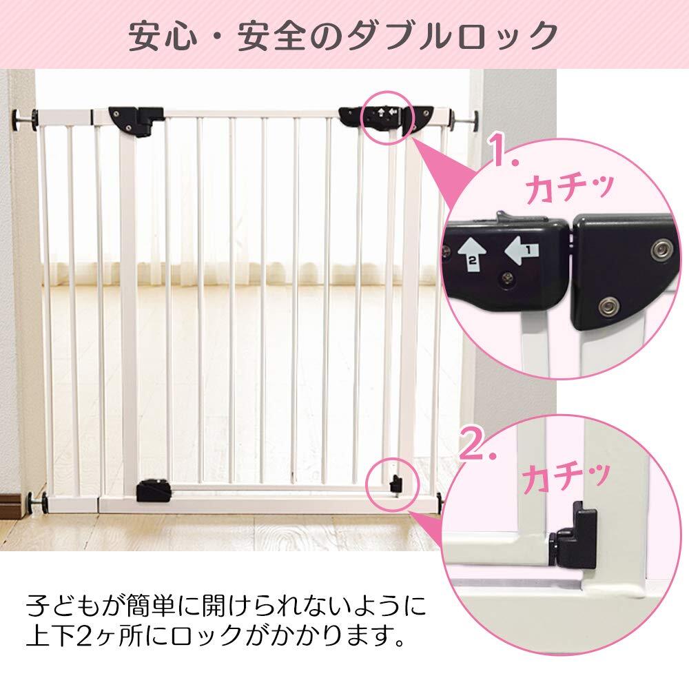アイリスプラザ ベビーゲート 高さ78cm 取付幅70-91cm ハイタイプ 拡張可能 安心安全ダブルロック機能 突っ張りタイプ ペットゲート ホワイト