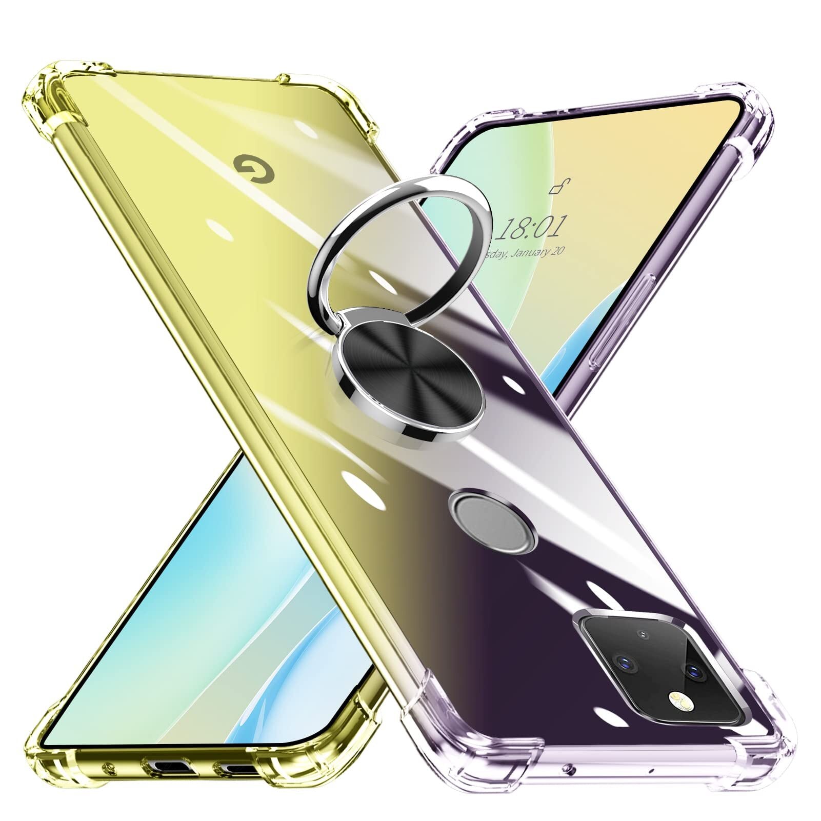 Google Pixel 5 ケース リング付き 透明 耐衝撃 TPU クリア pixel 5 ケース 車載ホルダー対応 全面保護 ピクセル5カバー レンズ保護 軽量 薄型 衝撃防止 カーマウントホルダー 黄変防止 スクラッチ防止 擦り傷防止 保護カバー ブラック/ゴールド KC64-107 | BASE SHOP