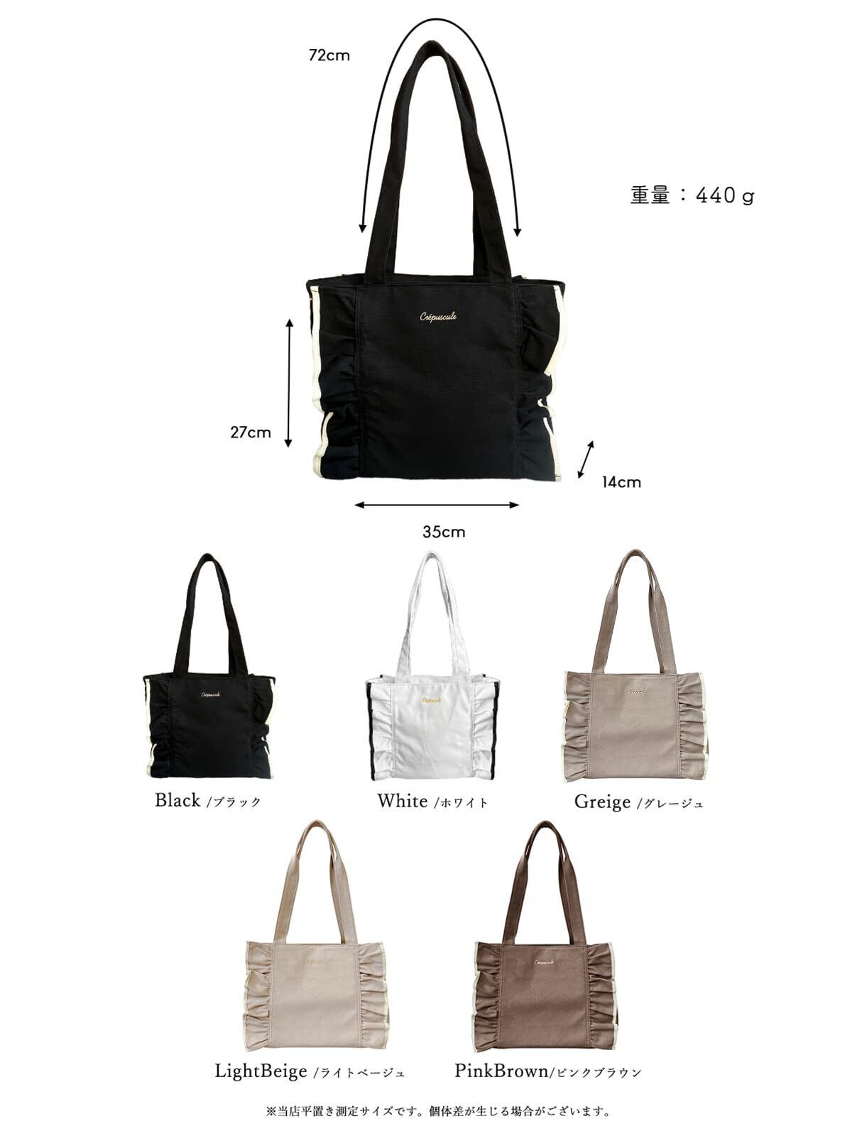 [ジゼル] トートバッグ 大きめ 大容量 帆布 キャンバス バッグ マザーズバッグ 肩掛け フリル レディース