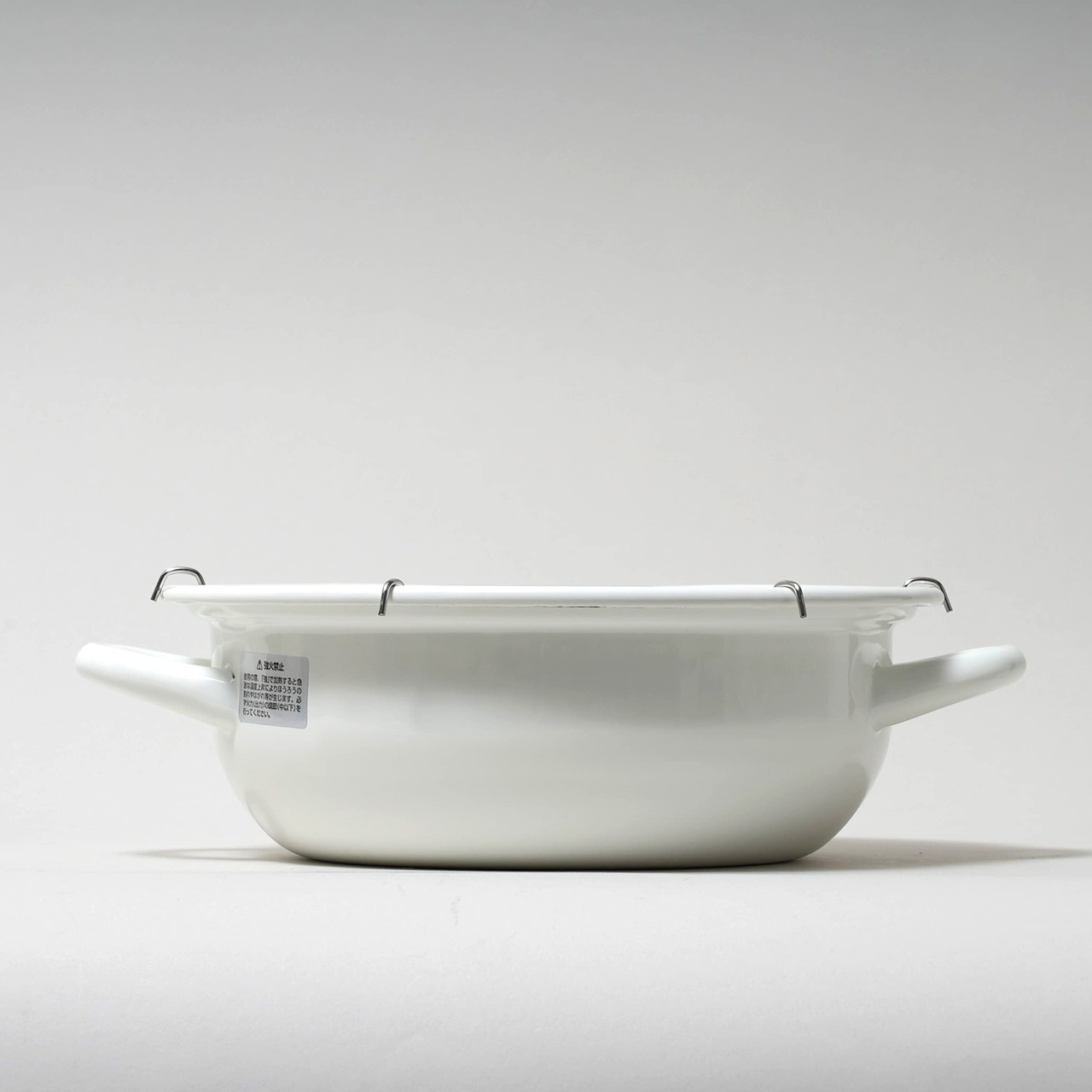 素材・材質:表面加工/ほうろう、材料の種類/本体/ほうろう用鋼板(底の厚さ0.8mm)、取っ手/ほうろう用鋼板、アミ/鉄(クロムめっき)