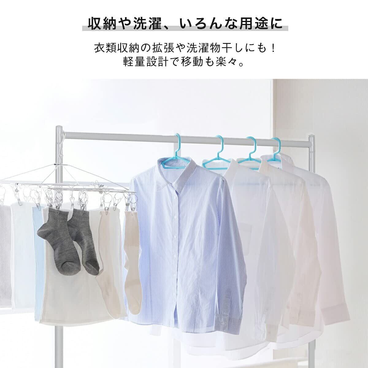 【頑丈】頑丈なスチールをしっかり溶接しているので強度抜群です。耐荷重は70kgなので重さを気にせずたっぷり衣類を掛けれます。