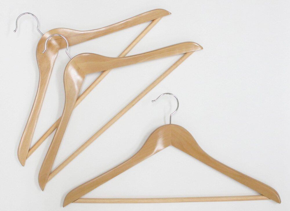 サワフジ 洋服ハンガー 木製ハンガー3本組 幅440mm スラックス パンツ ズボン スーツ 天然木 薄型 北欧 掛け クローゼット 収納 頑丈 洗濯 物干し 部屋干し 室内 小物 タオル 衣類 HW-45-3P | BASE SHOP