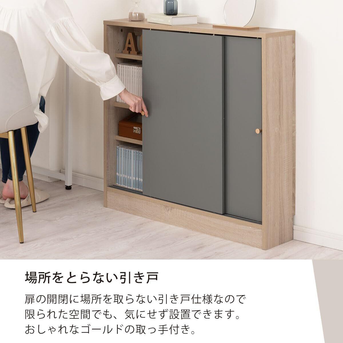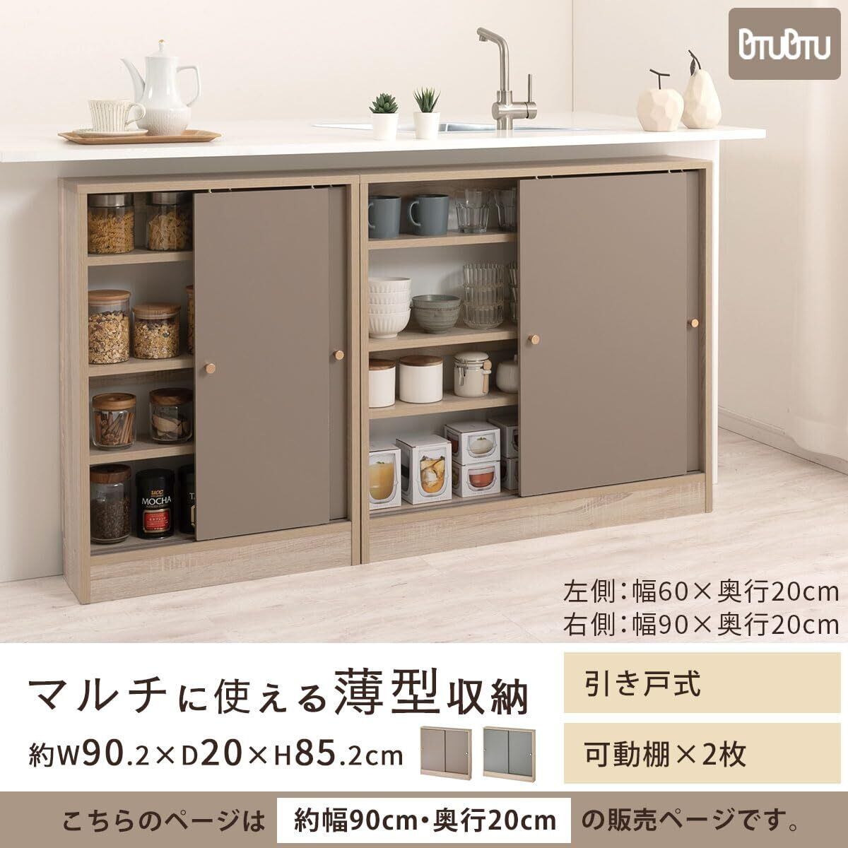 ぼん家具 カウンター下収納 奥行20cm 引き戸 幅90cm 薄型 キッチン収納 マルチラック キャビネット グレージュ