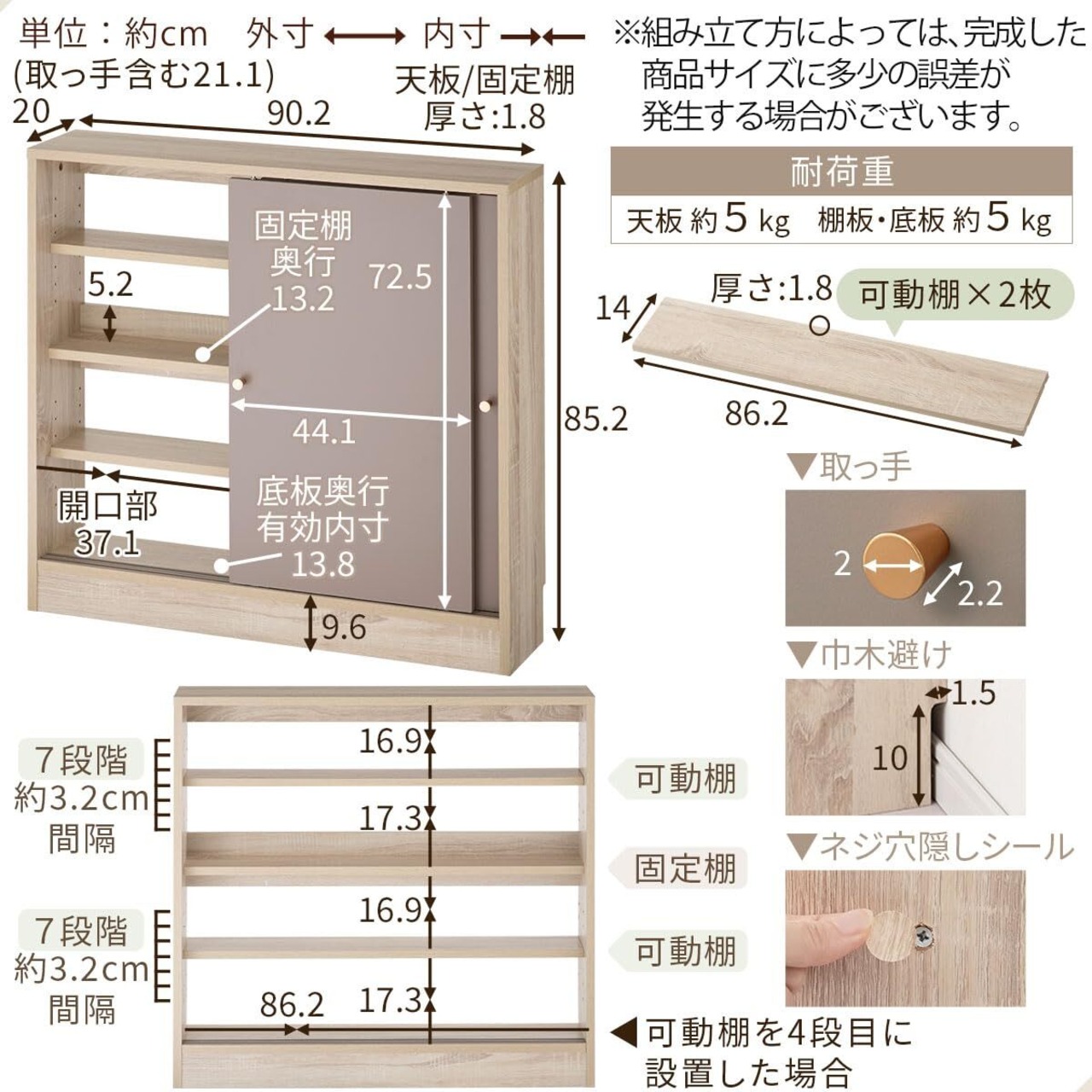 商品外寸:幅902×奥行211(取っ手含む)×高さ852 / 商品重量:約21kg