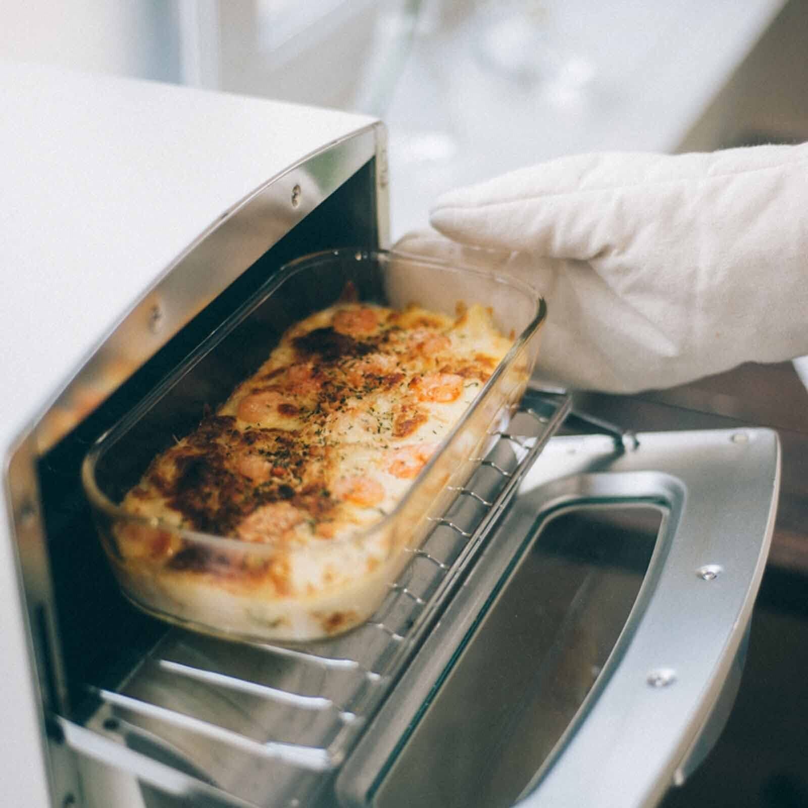 耐熱ガラスの保存容器なので、電子レンジ対応・フタを外してオーブンでも使える。より幅広い調理や保存におすすめ