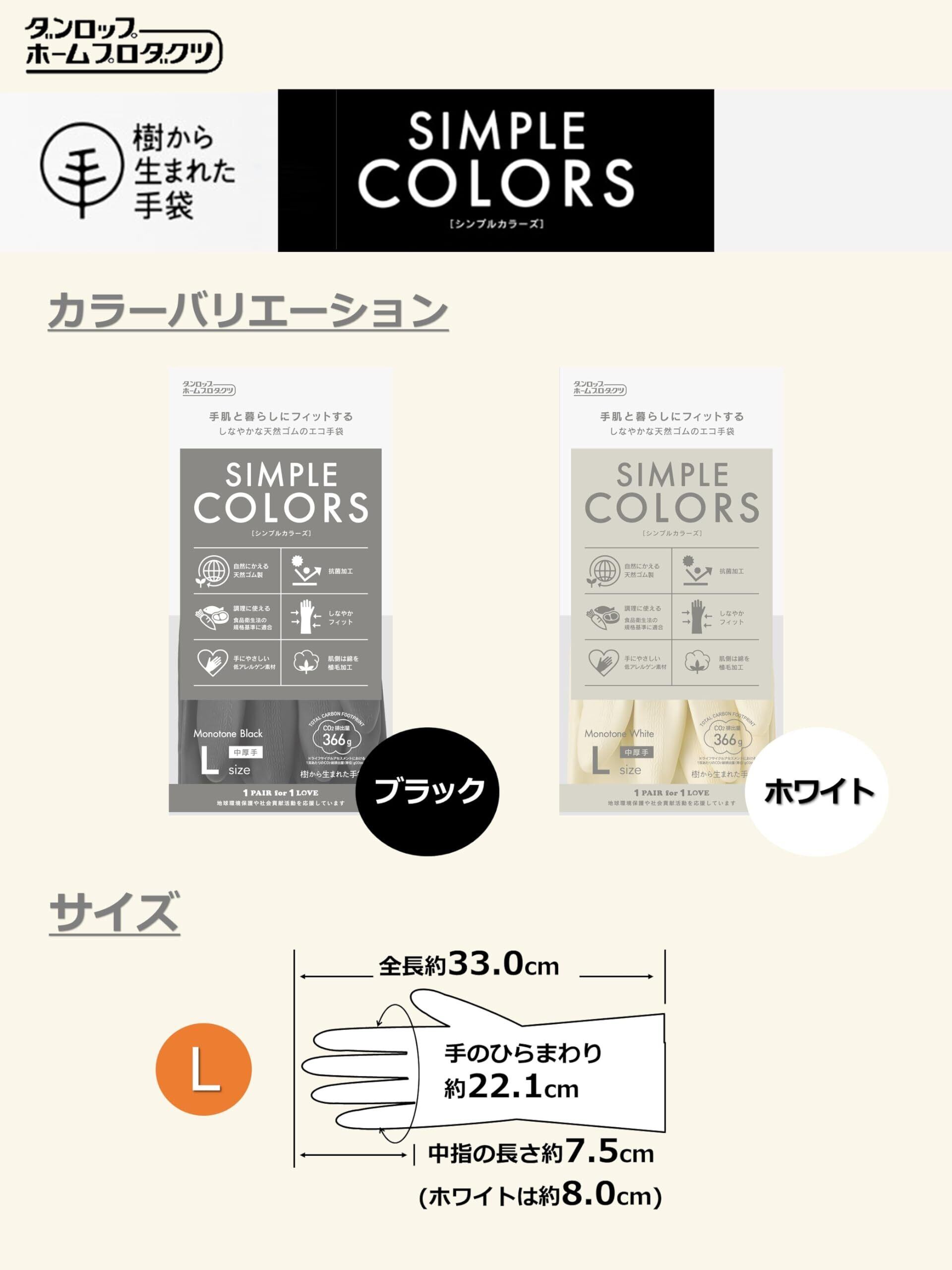 ダンロップ シンプルカラーズ L ブラック 自然にかえる天然ゴム製 低アレルゲン素材 調理につかえる 抗菌加工 しなやかフィット
