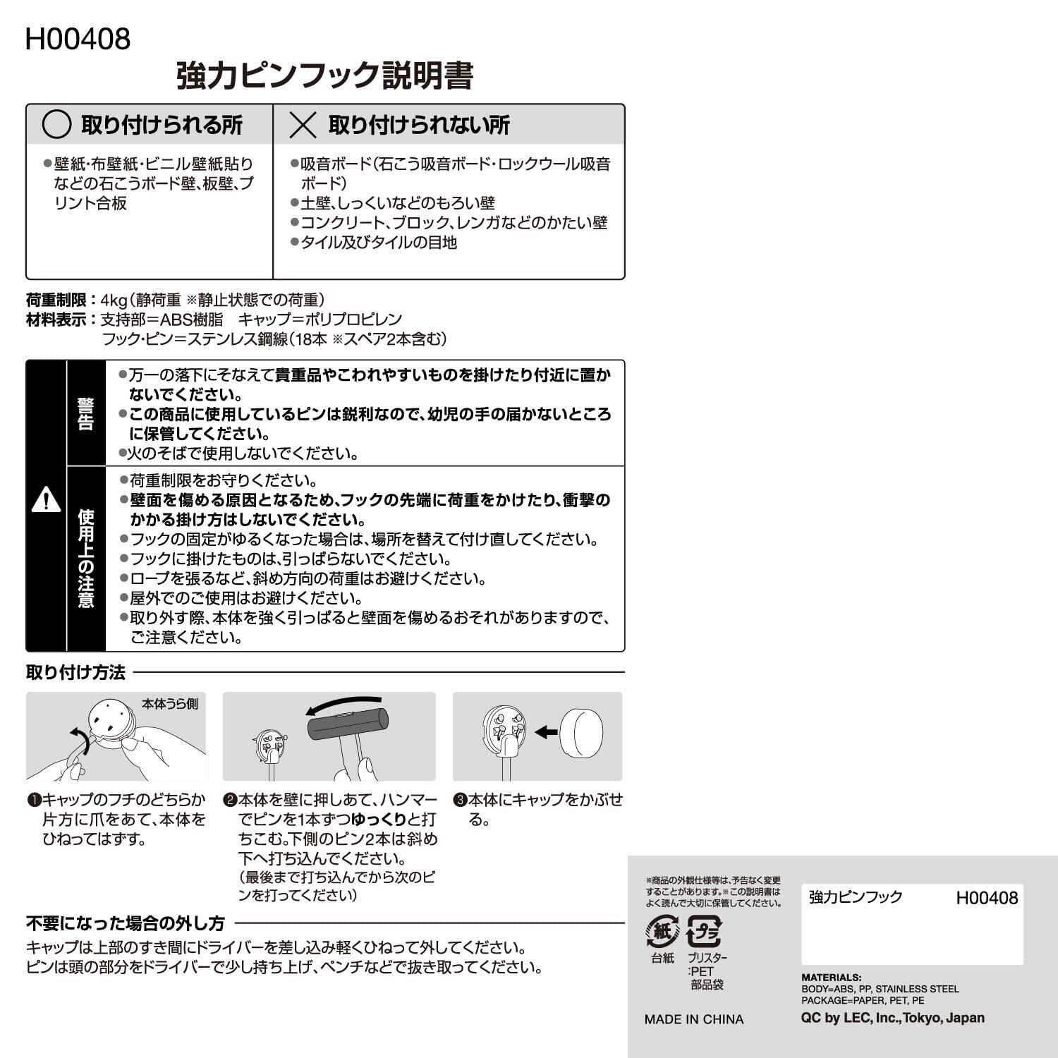 レック(LEC) 強力ピンフック 4個入 耐荷重:4kg ホワイト H00408