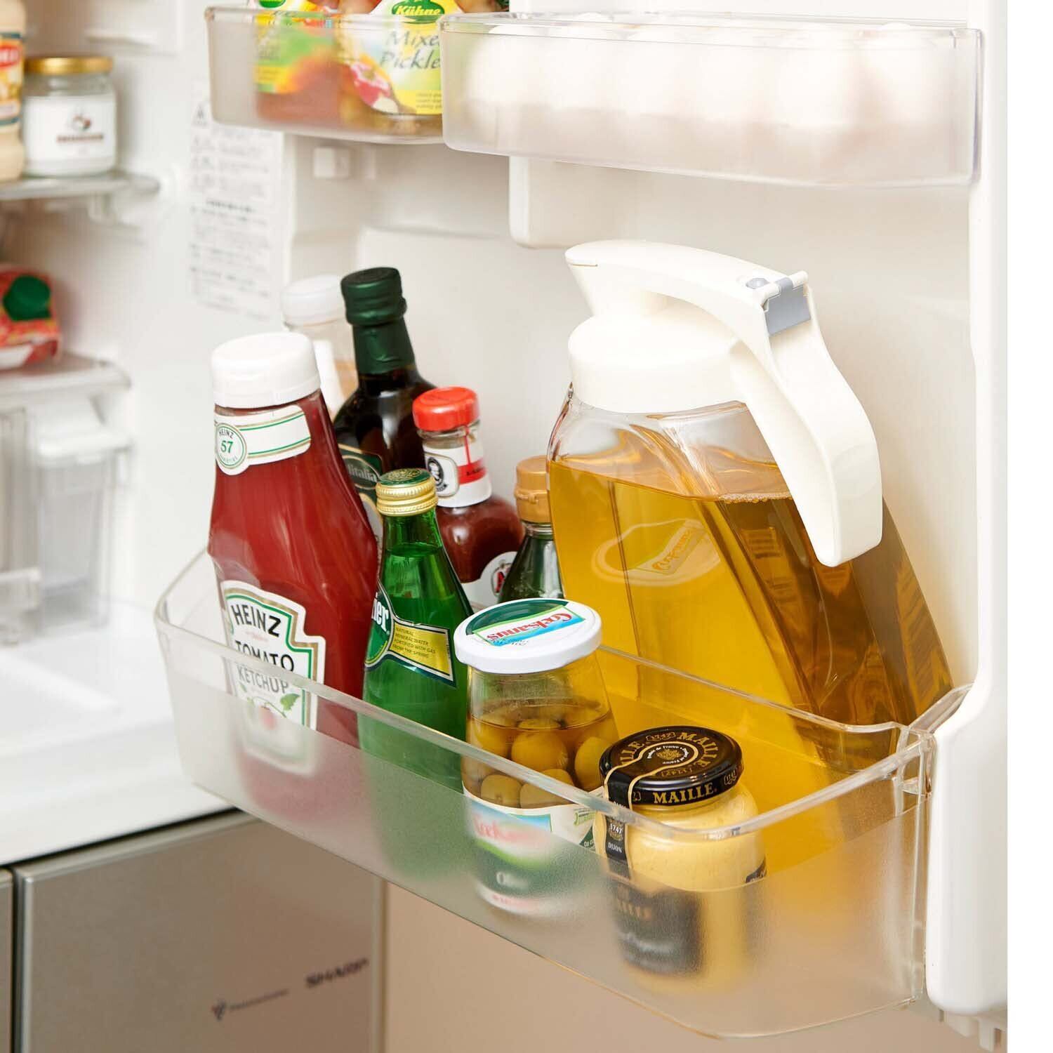 サイズ:幅17×奥行10.2×高さ29.8cm、容量:3.0L、重量:450g、材質:本体/AS樹脂、ハンドル付フタ/ポリプロピレン、中栓・ロックレバー/ABS樹脂、注ぎ口用パッキン・ハンドル用パッキン/シリコーン、食洗機の使用:不可、生産国:日本