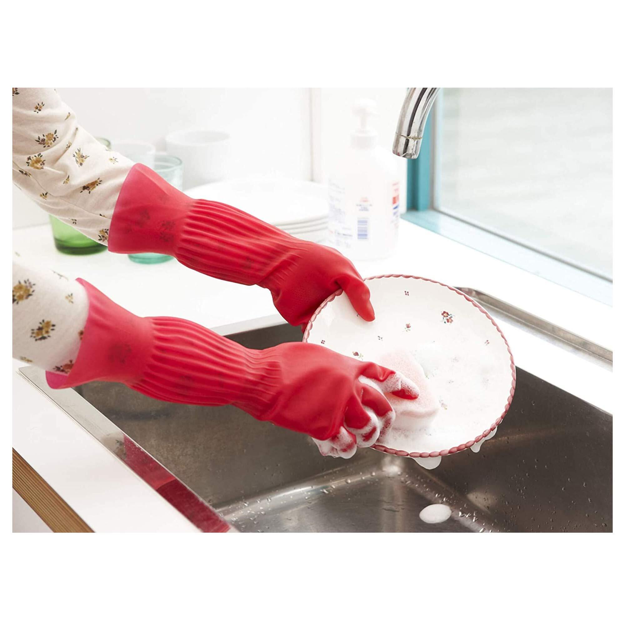 キッチン・食器洗いお掃除に! ○繊細フィットな指先脱ぎはめしやすいのに感覚のつかみやすい細い指先。○ズレにくい袖口気になる袖口も絞ってあるのでズレにくい。○細身エレガントなシルエットスタイリッシュなキッチンに似合う美しいギャザーのフォルム。○臭いを減量気になるゴムの臭いを減らしました。