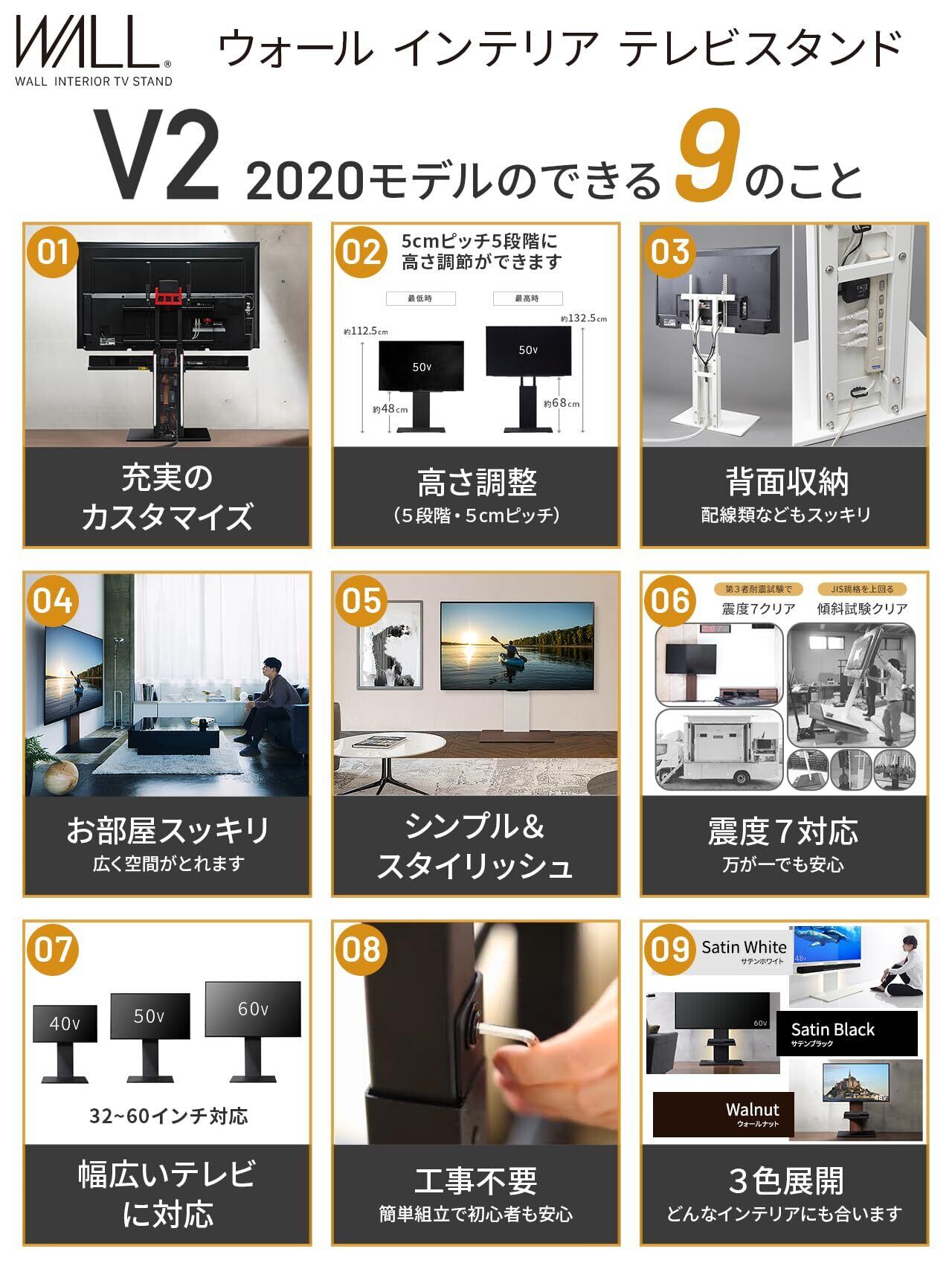 WALL テレビスタンド テレビ台 壁寄せテレビスタンド WALLウォール V2 ロータイプ (2020モデル) 32~60V対応 ウォールナット EQUALS イコールズ