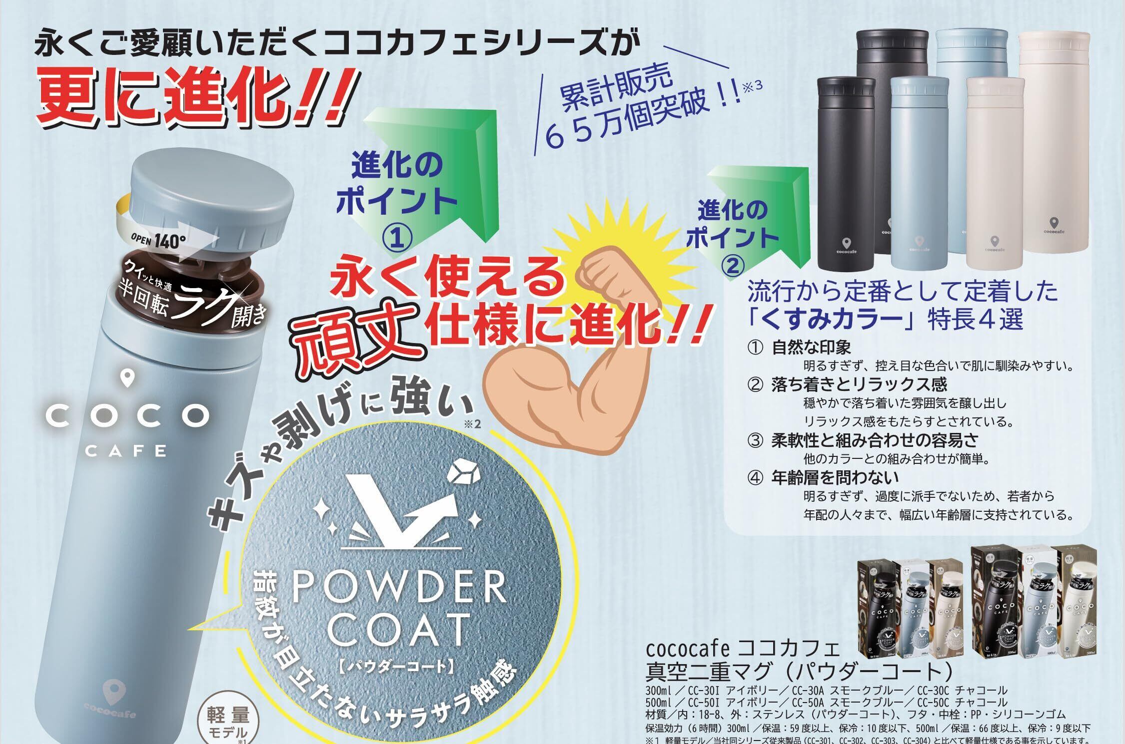 【COC CAFE】ココカフェ ホッとひと休み。ここがいつものカフェになる。 <商品特徴> ◎開けるも閉めるもクイッとカンタン半回転(140°)。 ◎リブがあるので手にかかって取り出しやすい。 ◎グッと掴んでしっかり回せる開けやすいフタ形状。 キズや剥げに強く、指紋が付きにくいパウダーコート。サラサラ触感。 ◎氷ストッパー付き。熱い飲み物の飛び出し防止にも! <商品仕様> 保温効力:66℃以上、保冷効力:9℃以下(6時間) ●商品サイズ:直径70×217mm(満水:540ml) ●重量:260g ●素材:内ビン/ステンレス鋼(クロム18%・ニッケル8%)、胴部/ステンレス鋼(粉体塗装)、フタ栓・中栓/ポリプロピレン、パッキン/シリコーンゴム