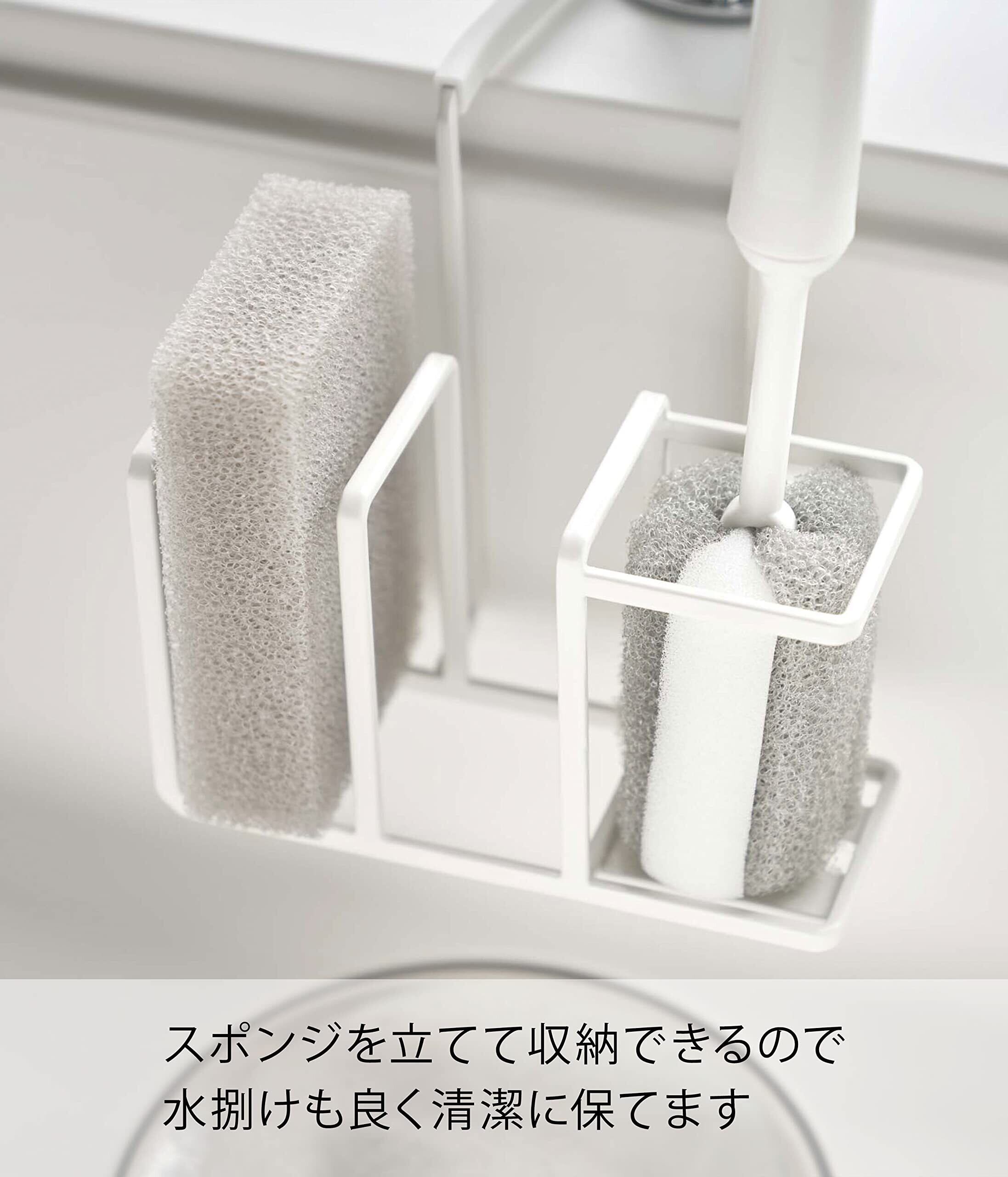 山崎実業(Yamazaki) 蛇口にかけるスポンジ&ブラシホルダー ホワイト 約W14XD7.5XH13cm プレート スポンジ置き スポンジラック ブラシスタンド 5082