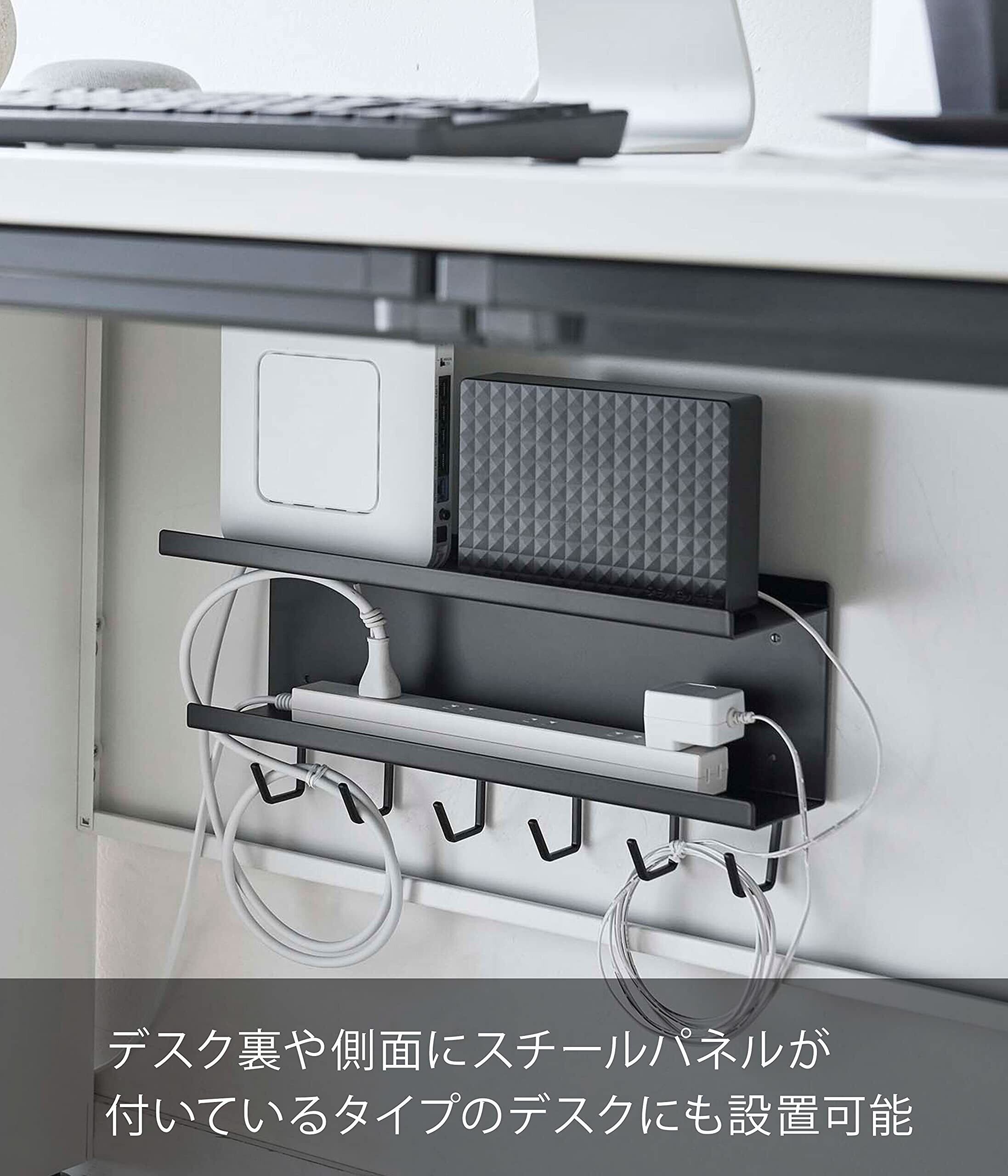 山崎実業(Yamazaki) マグネット ケーブル&ルーター収納ラック ブラック 約W40XD11XH18cm スマート 浮かせて収納 デットスペースを有効活用 5464