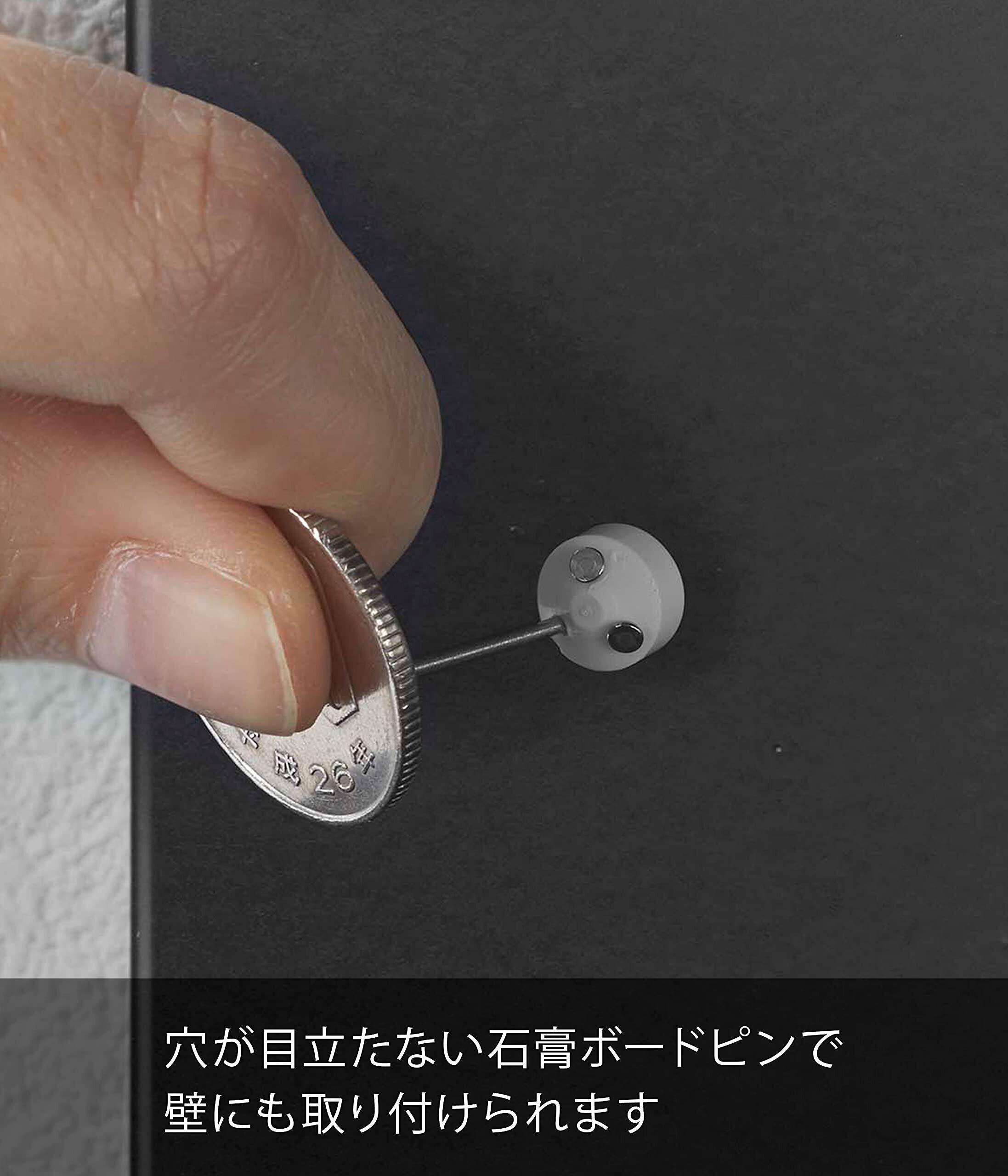 穴が目立たない石こうボードピンで壁にも取り付けられます。