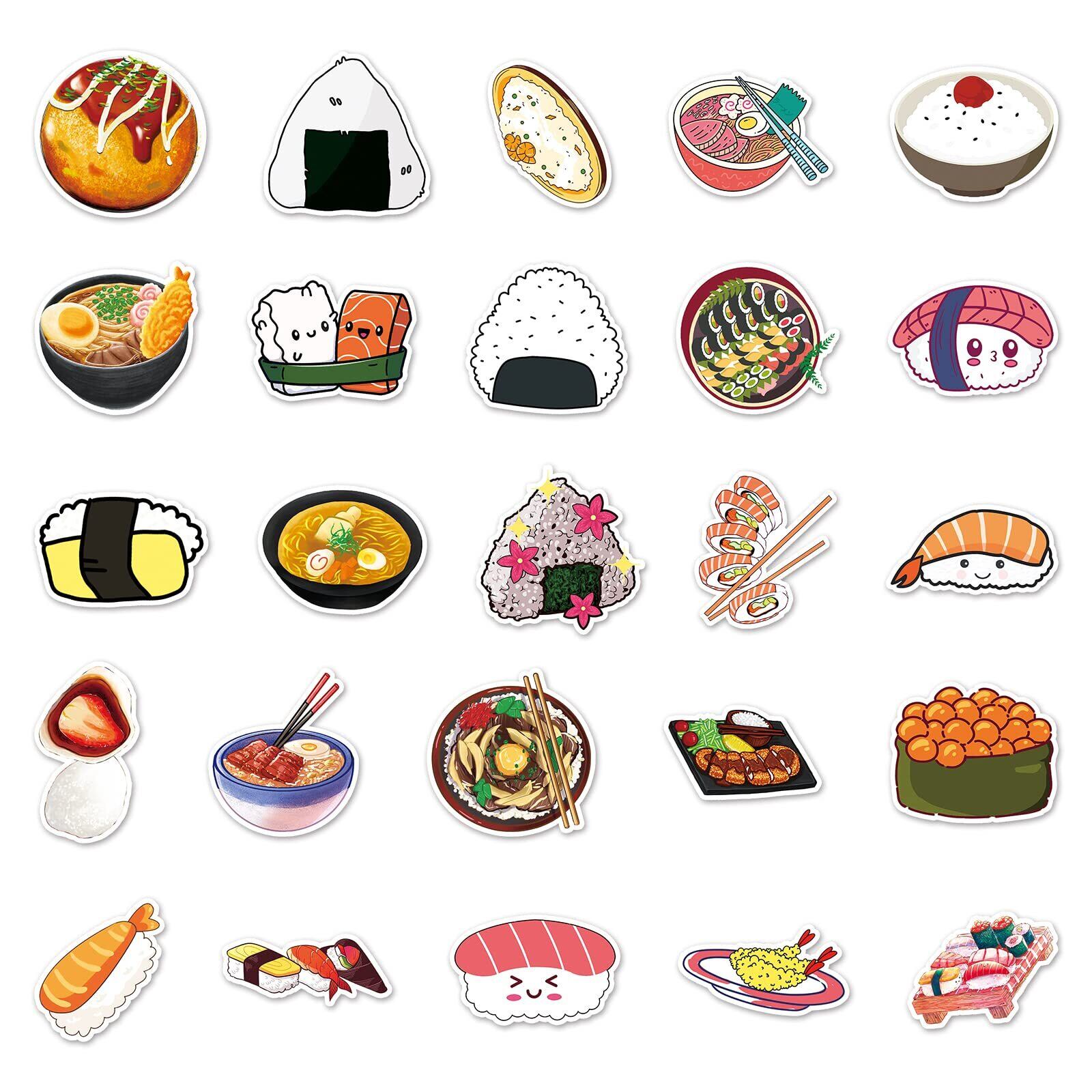 50枚 日本料理ステッカーセット 日本料理防水シール ステッカーパック 日本料理デカール スーツケース 車 自転車 バイク ヘルメット パソコン スノーボードに適用