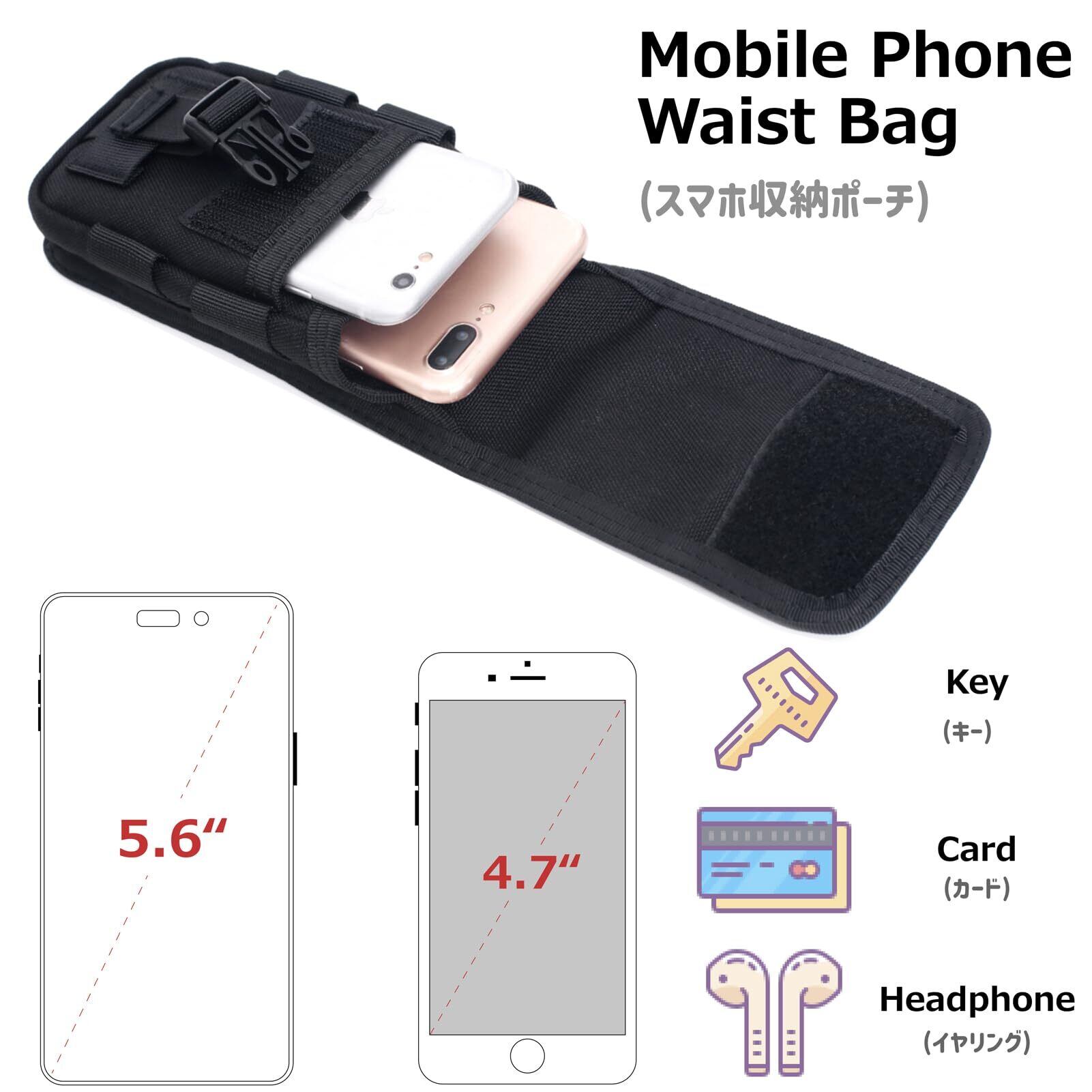 Azarxis スマホポーチ Molle対応 スマートフォン 手帳型 スマホケース モールシステム ユーティリティ EDCポーチ サバゲ― タクティカル ユーティリティポーチ (ブラック02) | BASE SHOP
