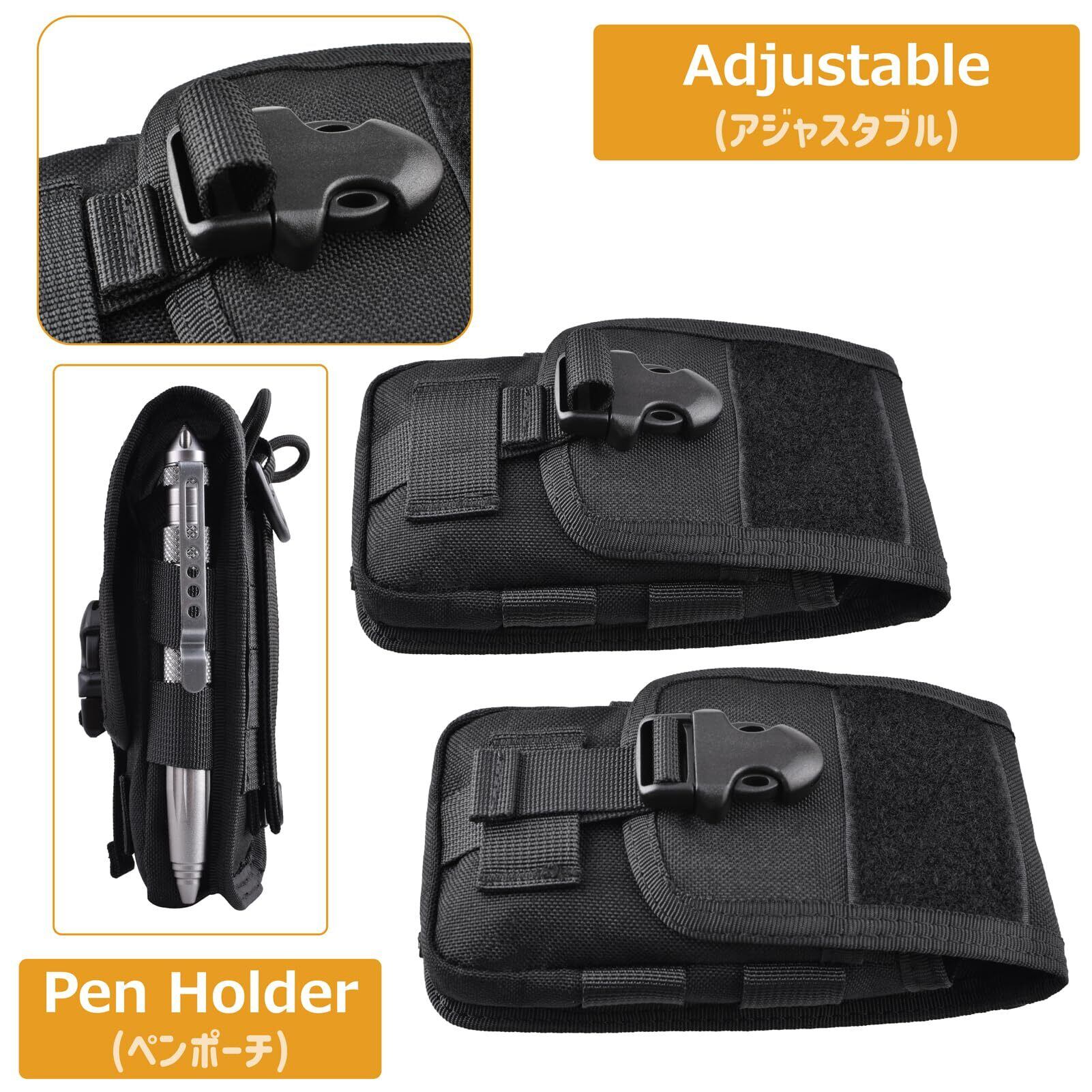 Azarxis スマホポーチ Molle対応 スマートフォン 手帳型 スマホケース モールシステム ユーティリティ EDCポーチ サバゲ― タクティカル ユーティリティポーチ (ブラック02)