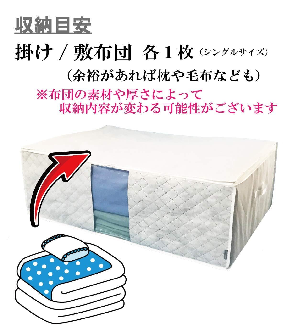 イニコライフ 布団収納袋 活性炭シート入 大容量 布団袋 収納ケース 掛け 敷き布団をまとめてスッキリ 持ち手 透明窓付 通気性の良い不織布製 (中芯無し)