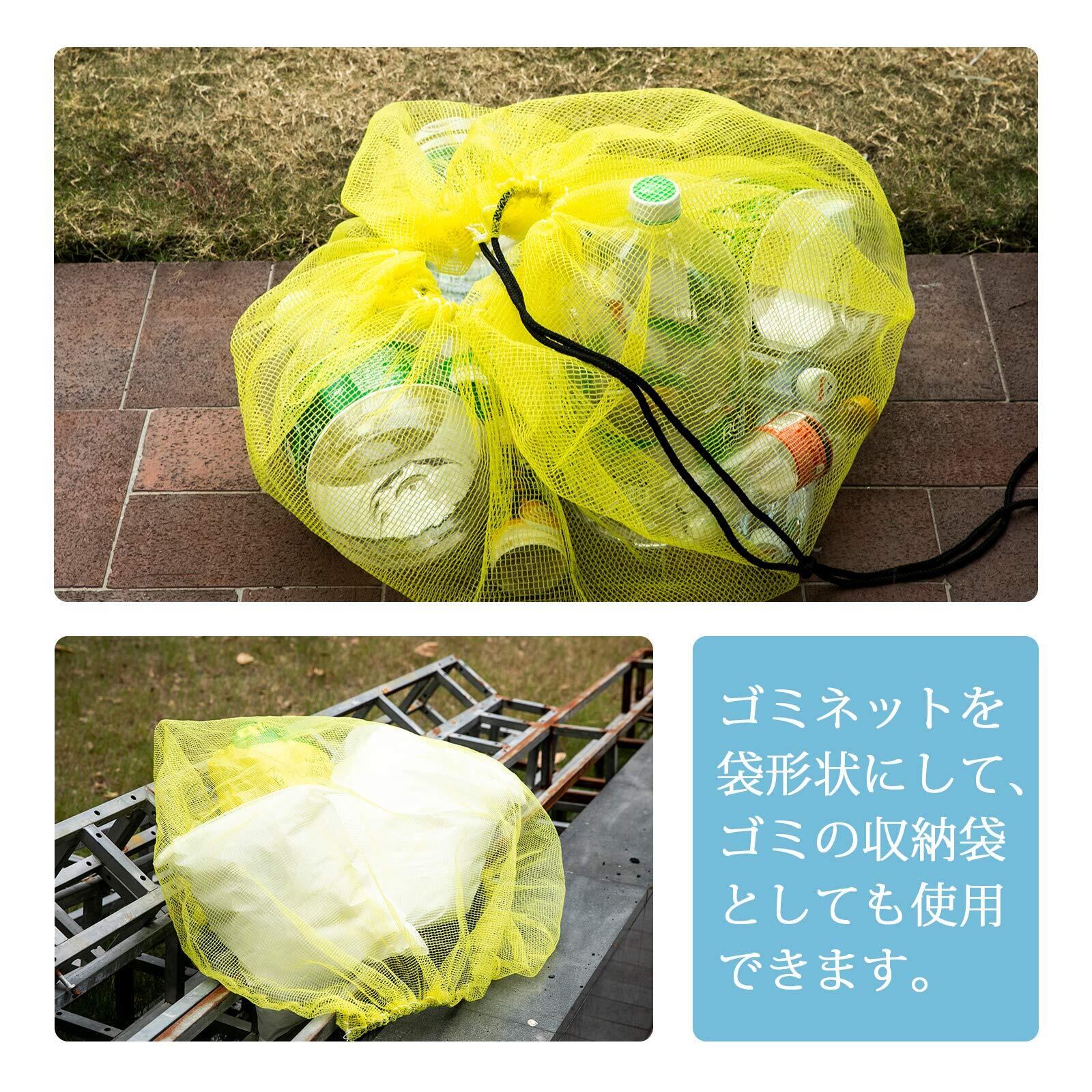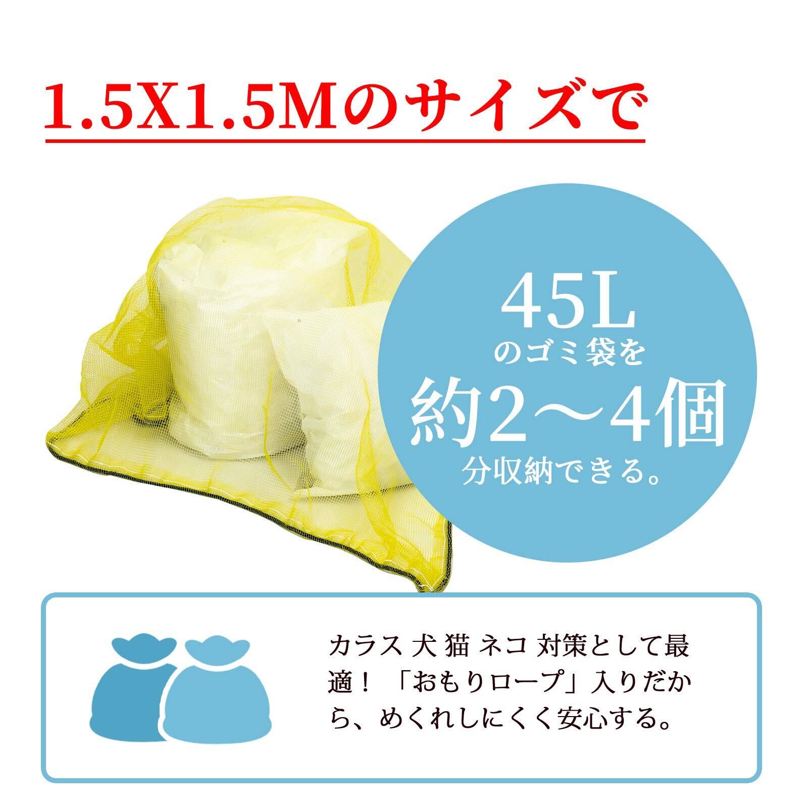 OFFO カラスよけネット ゴミネット 1.5x1.5m 45Lのゴミ袋約4個分の収納力 4mm 細かい網目 カラスよけ おもり入り ロープ付き 設置簡単 風に強い 鳥 カラス 鳩 犬 ネコなどからしっかりガード(イエロー) | BASE SHOP