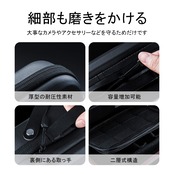 【持ち運びも楽々】gopro 収納ボックスは両開きファスナーを採用し、側面に持ち運びしやすい持ち手が配置されるため、携帯にとても便利です。内部には衝撃に強い素材を使用しているので、収納したカメラなどをしっかりと保護できます。コンパクトで軽量で、旅行やキャンプ、アウトドアスポーツなどに理想的な収納ケースです。