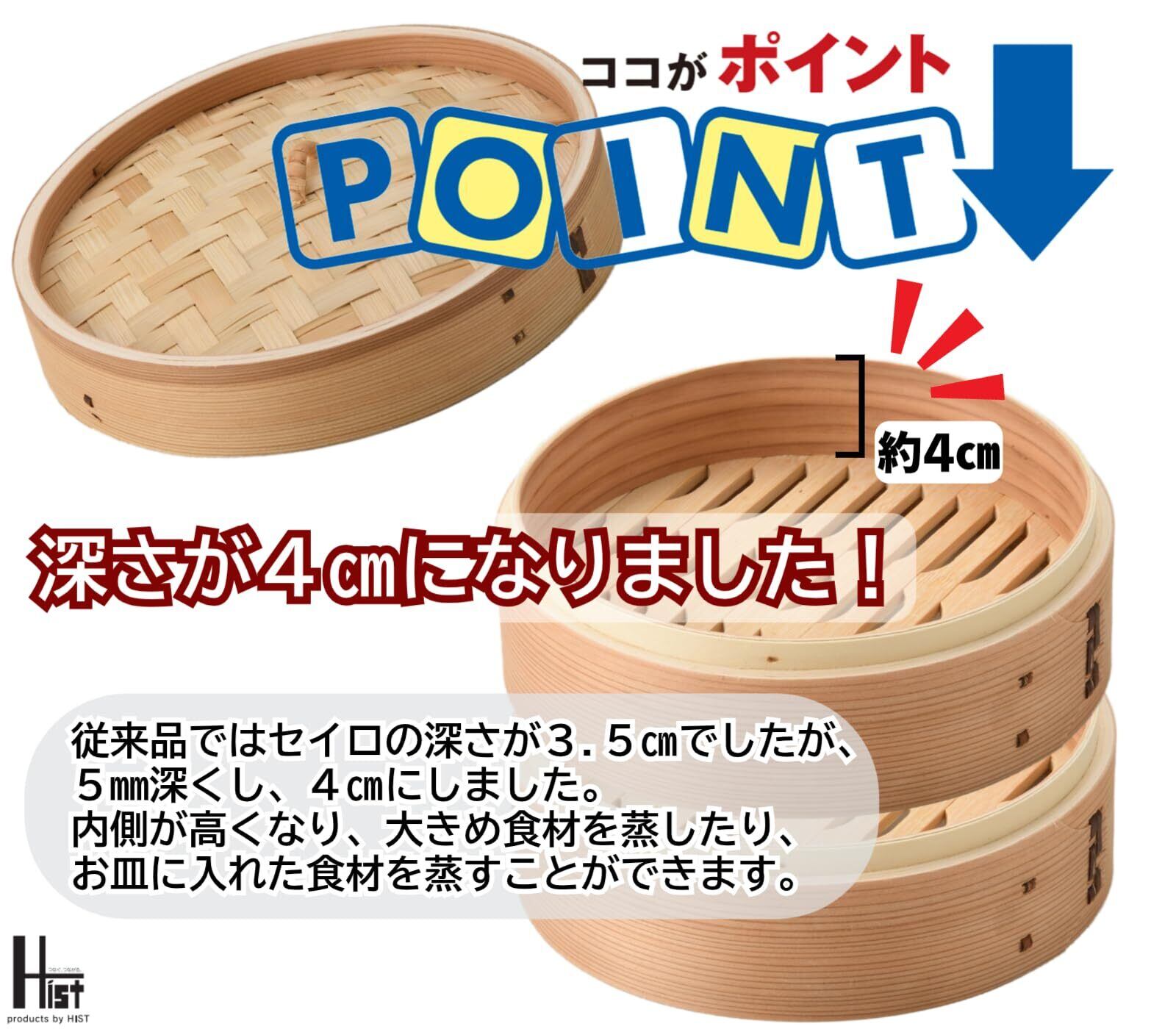 【竹セイロとの違い】竹製と大きな違いはございません。竹に比べますと硬度は劣りますが杉で蒸したときの独特の香りをお楽しみいただけます。