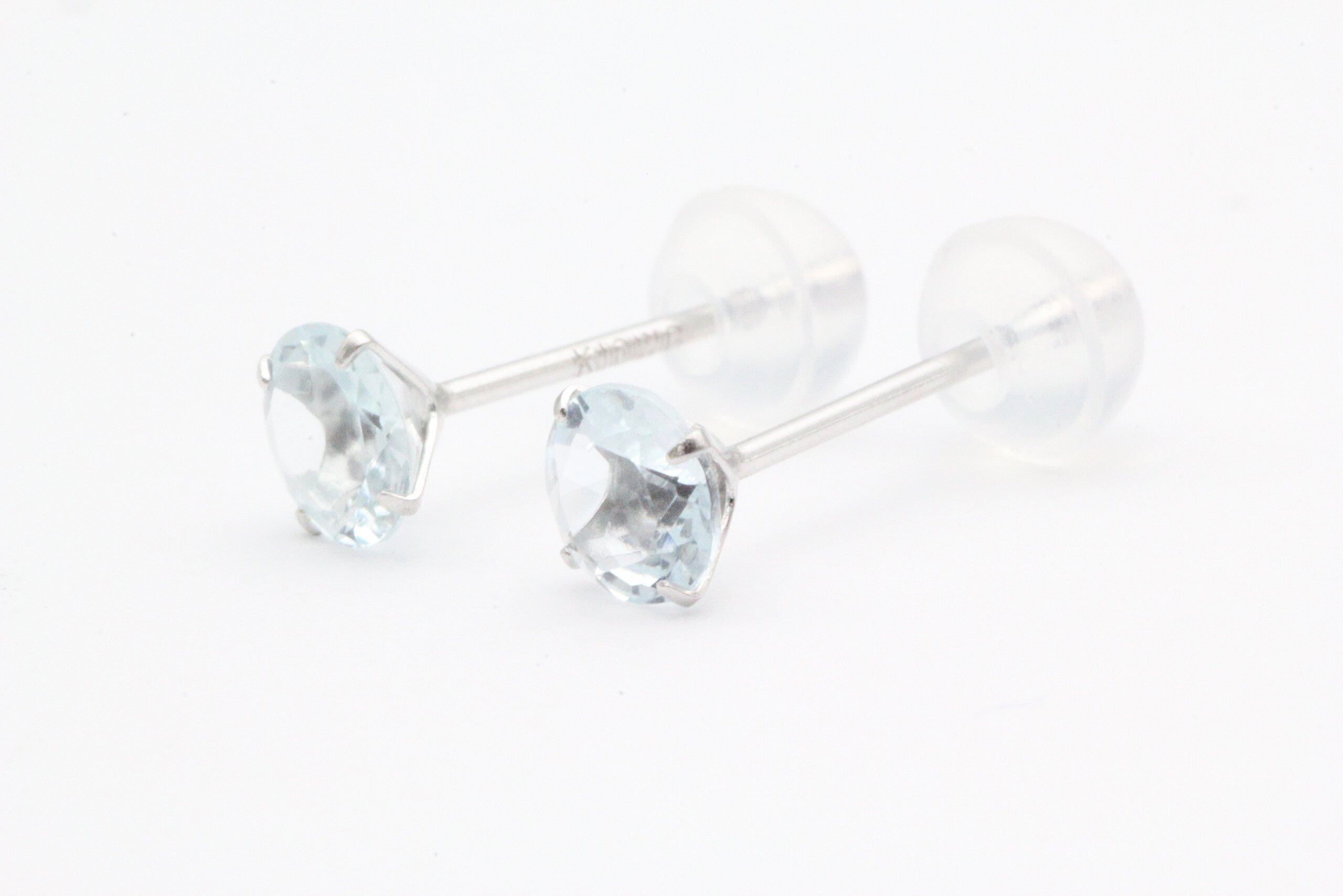 [キャンディ] Candy K10ホワイトゴールドアクアマリン ラウンドピアス BCktmt-aq-wg