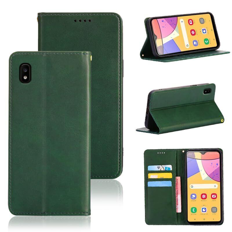 Galaxy A20 SCV46/ Galaxy A21 SC-42A ケース 手帳型 カバー PUレザー カード収納 財布型 耐衝撃 ケース マグネット スタンド機能付き 5色(Galaxy A20 SCV46/ Galaxy A21 SC-42A ケース 手帳型) (濃い緑) | BASE SHOP