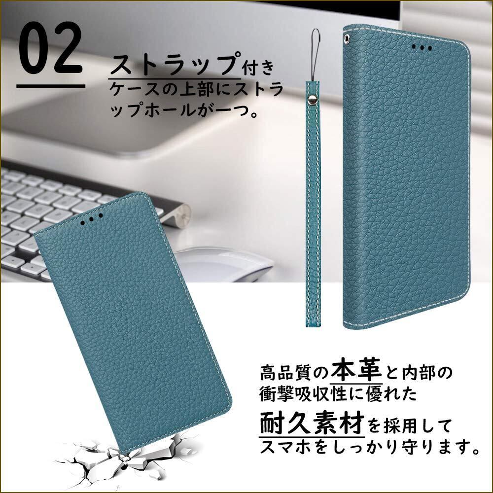 CLICSUN iPhoneX/Xs 対応ケース 高級牛本革ケース 手帳型 アイフォンX/Xs 対応カバー 本革 レザー カバー スタンド機能 ストラップ付き マグネット式 カードポケット ギフトボックス付き ブルー×グレー | BASE SHOP