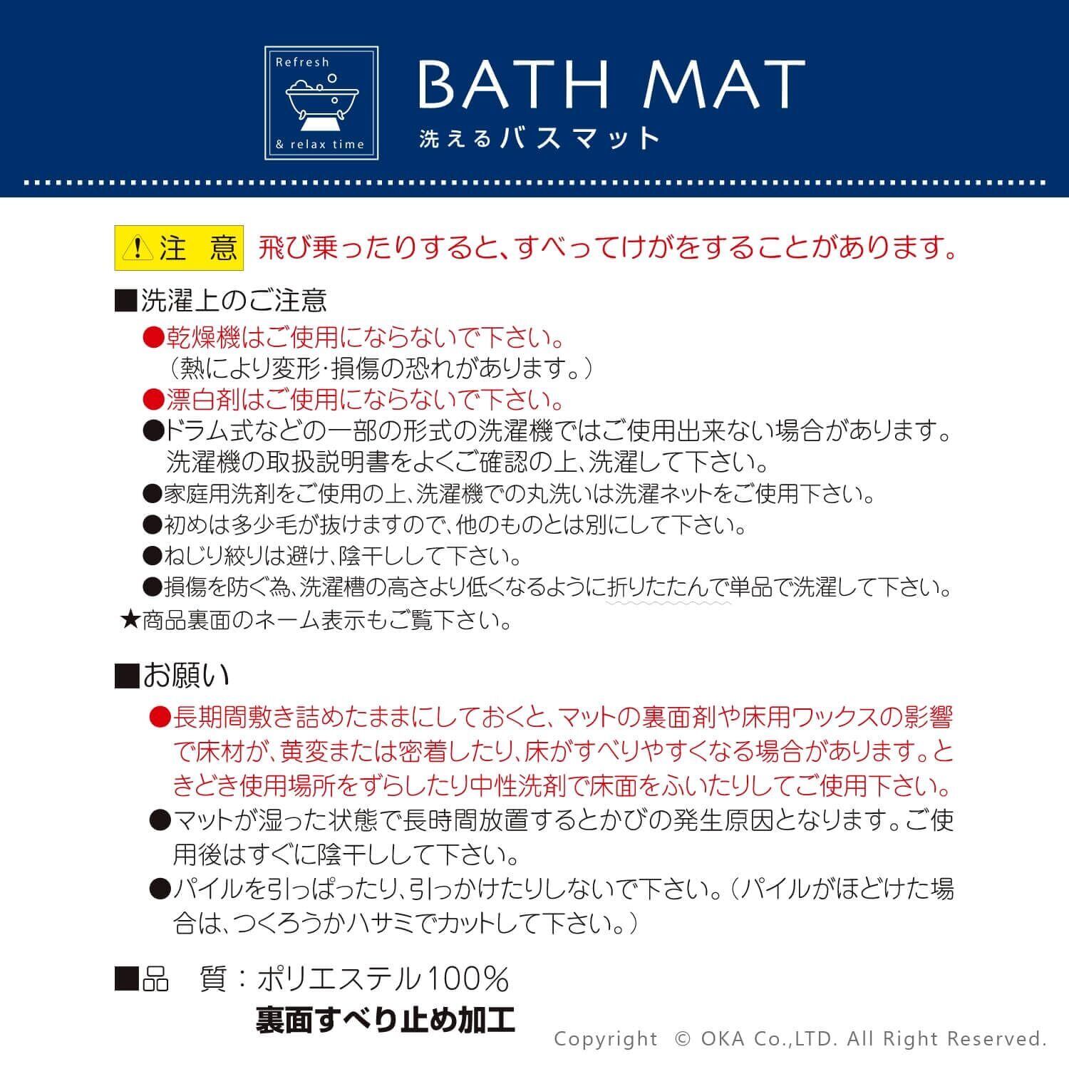 オカ(OKA) クリュム バスマット 約45cm×65cm ブルー (足ふきマット 洗える 滑り止め)