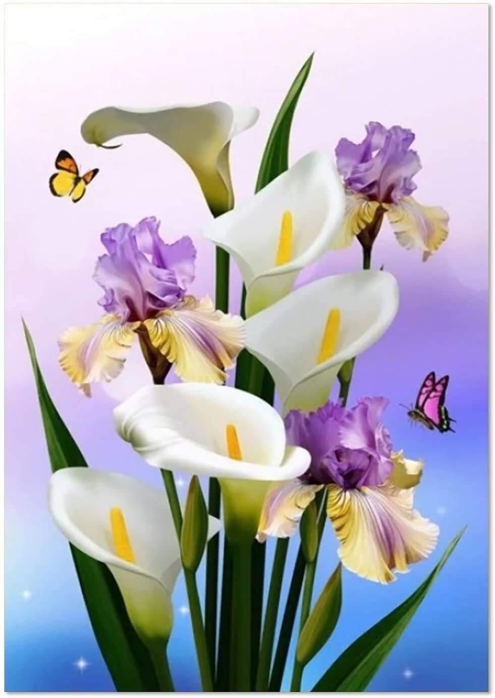Better Selection 5D ダイヤモンド絵画キット 花 ダイヤモンド 刺繍 絵画 アート 美しい カラー リリー DIY 番号キット ホームウォールデコ ホワイトとパープル 30x40 cm | BASE SHOP