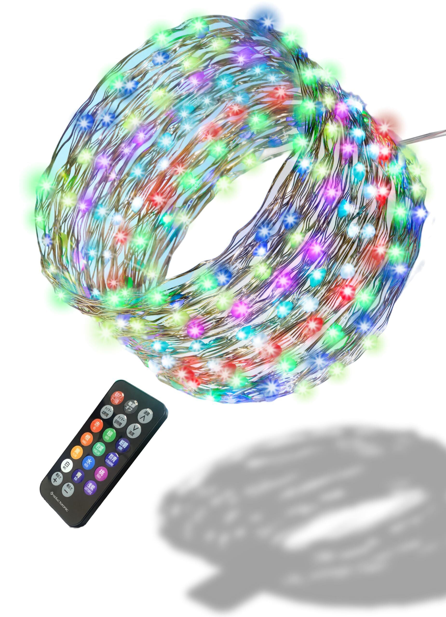カラフラ これひとつで12色に変化 - 多色 発光 LED イルミネーションライト 極細ストレート USB給電式 ~全12色マルチカラー発色タイプ~ ( 20m 200球 )