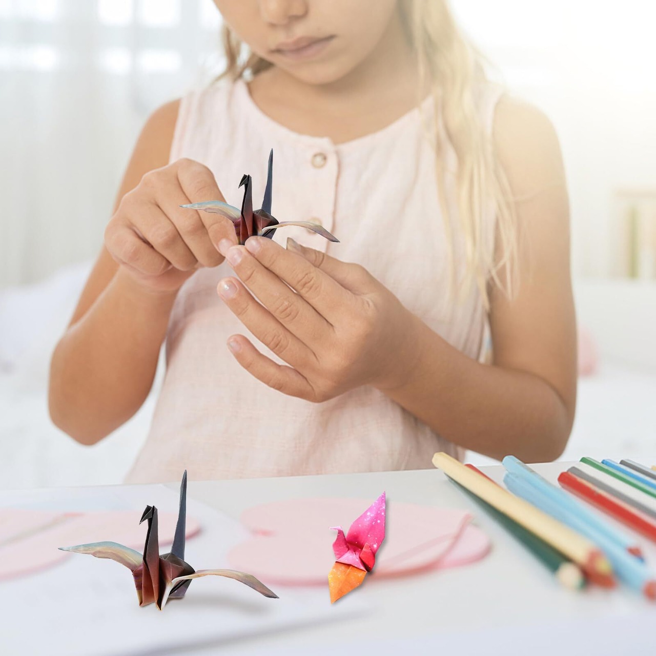 多用途な使用:千羽鶴やラッピング、誕生日パーティーの装飾、手芸紙としても大活躍。キッズから大人まで楽しめるDIYアイテムです。