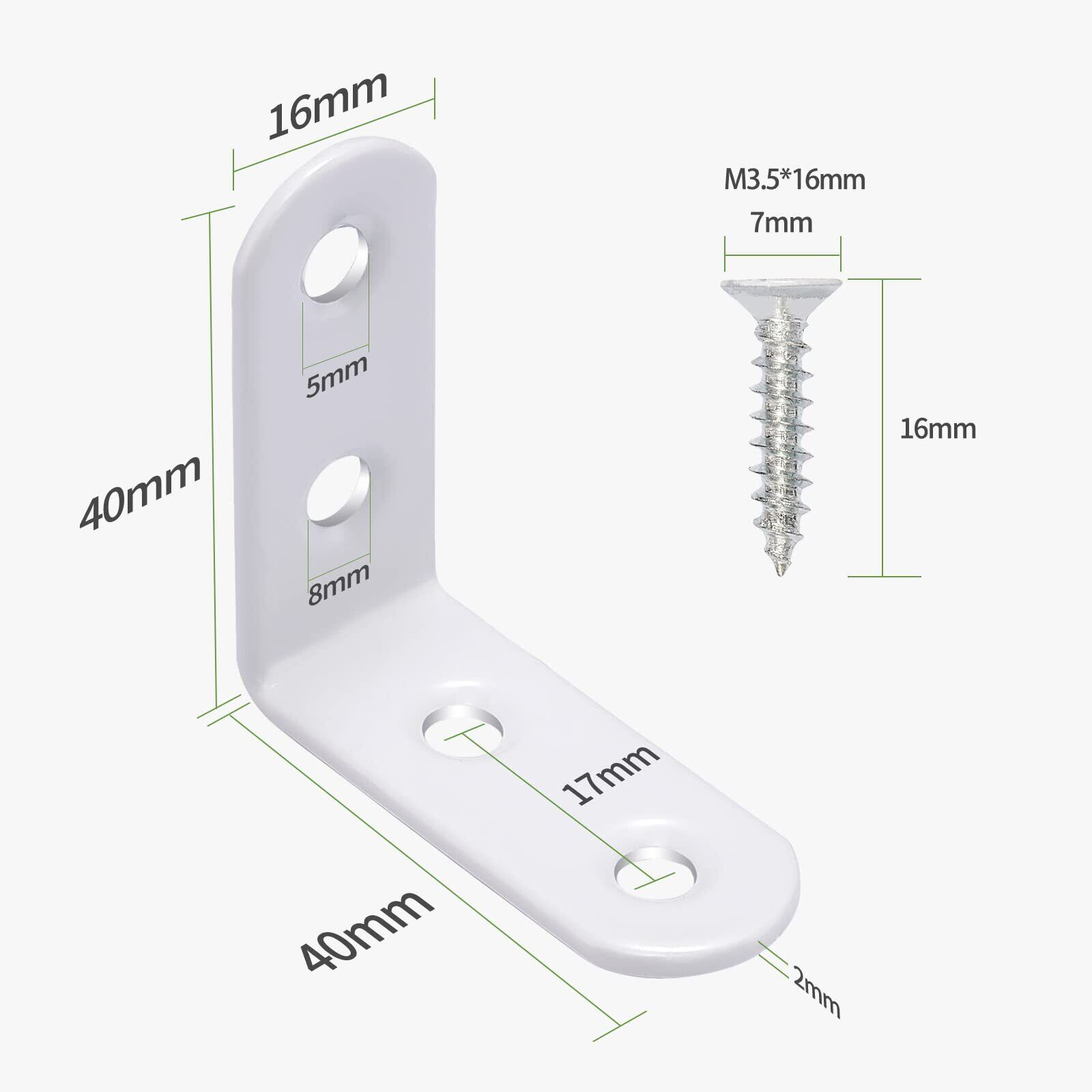 Litorange l字金具 白 40*40*16mm 16個 ネジ付き 厚さ2mm L字アングルブラケット棚受け金具 補強金具 接合金具