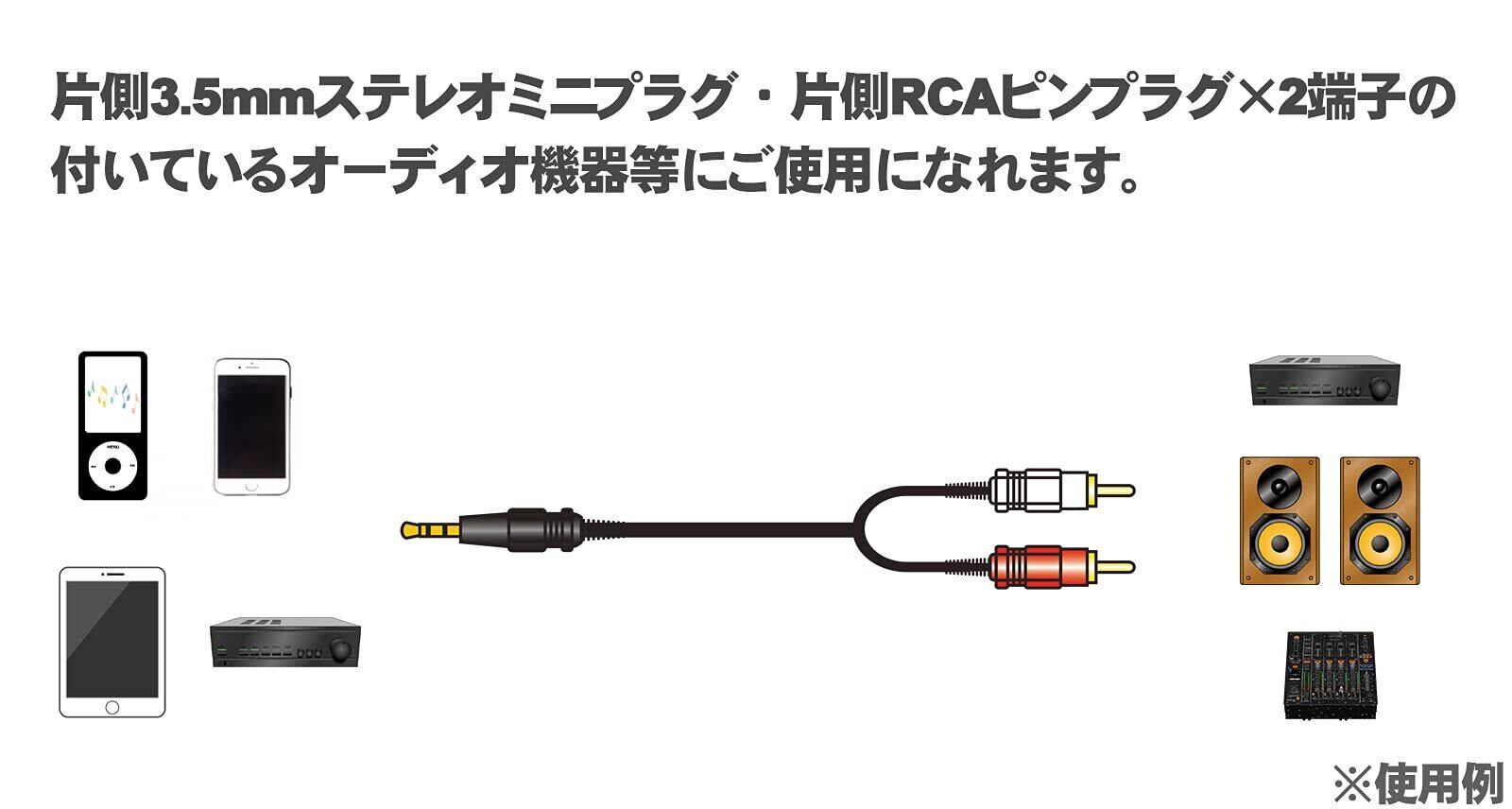 3.5mmステレオミニプラグ⇔ピン(RCA)プラグ×2 ステレオミニ端子とピン端子×2のあるAV機器全般にご使用になれます。