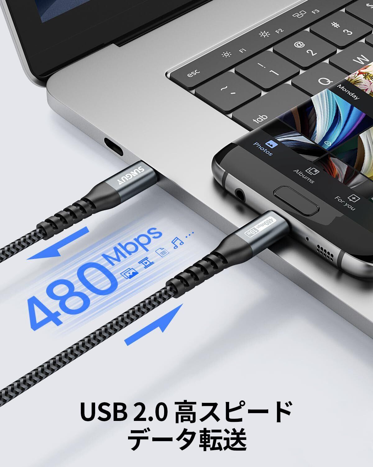 SUNGUY Type C Micro USB ケーブル ( USB C to micro ) OTGケーブル 0.5M 短い タイプC マイクロ タイプB 充電ケーブル USB2.0 データ転送 Androidスマホ などに対応 50cm | BASE SHOP