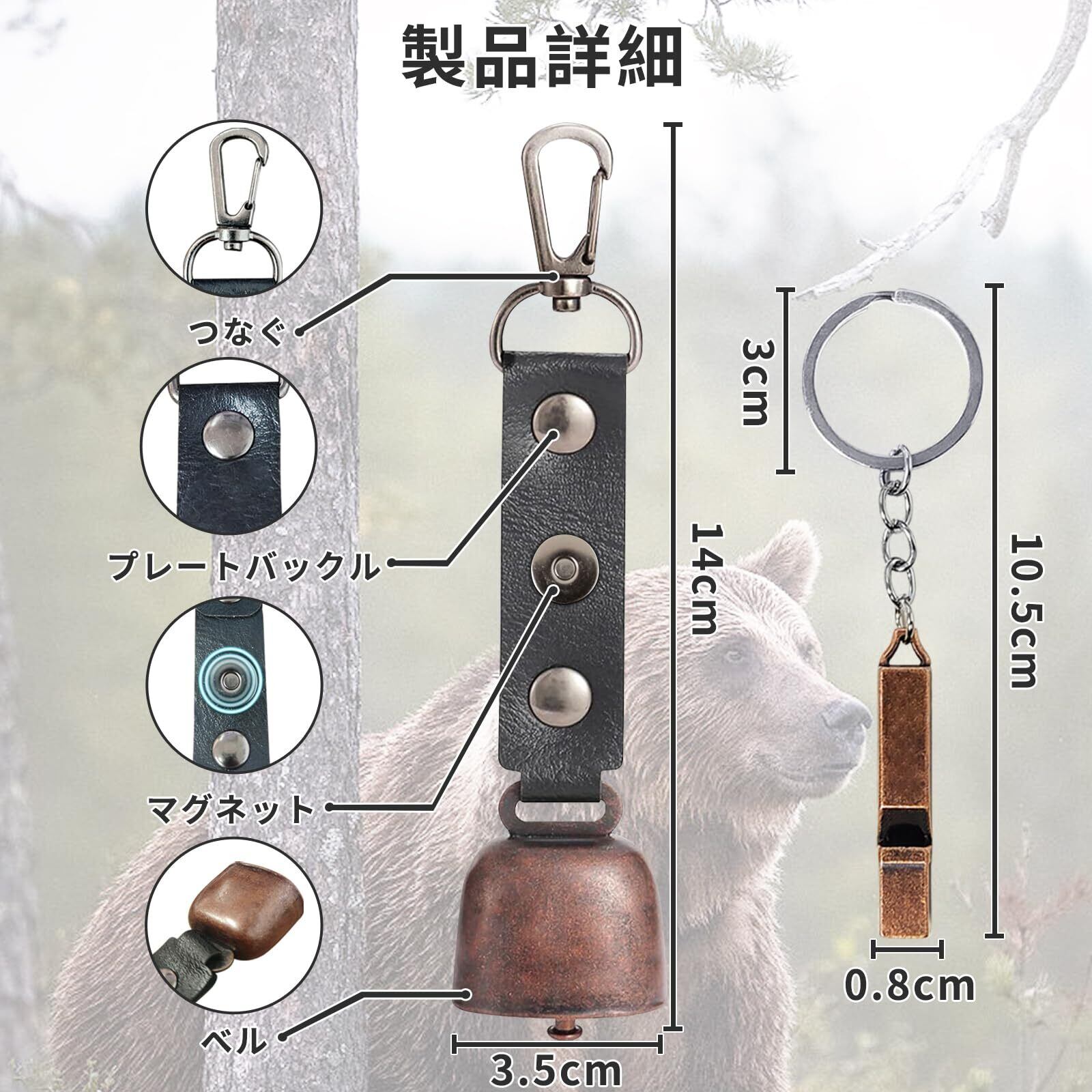 【熊を防ぐ鈴】一般に熊よけ鈴を身につけていれば、熊に自分たちの存在を知らせることにより、近寄ってこないと言われています。バックパックの肩ベルト部分かズボンのベルトループ部分に掛けるにおすすめです。