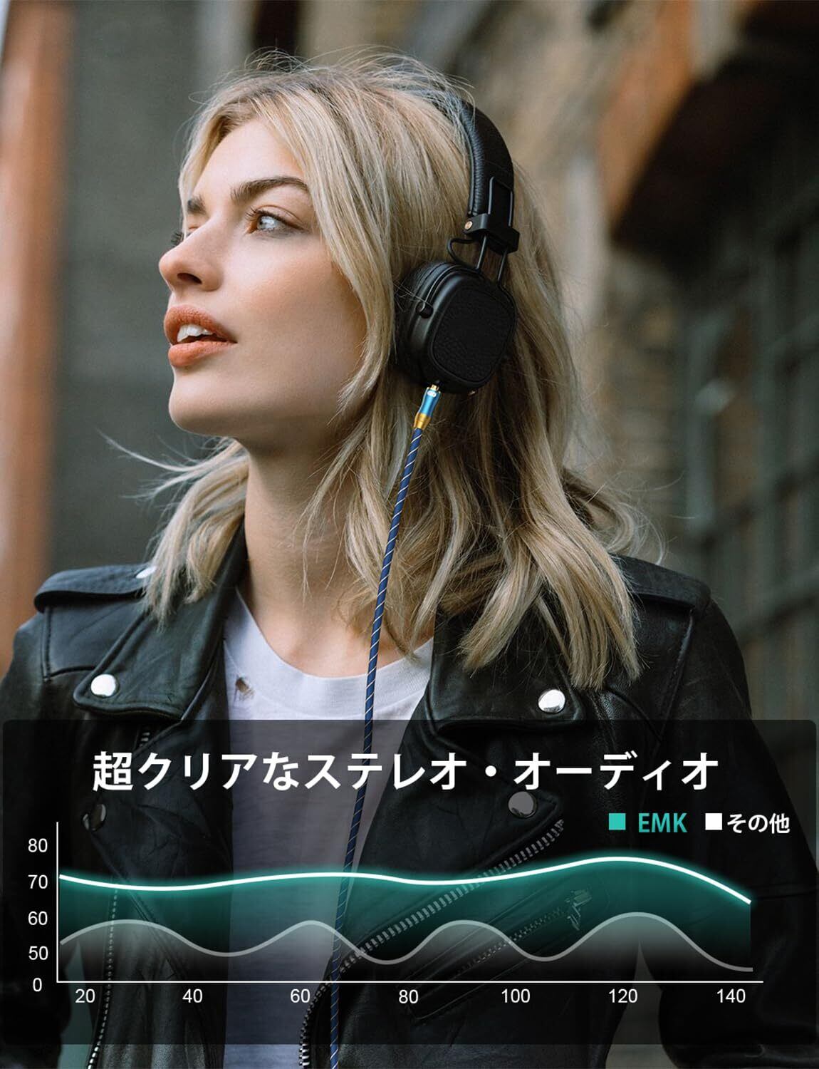 【高音質】金メッキコネクタとOFC(無酸素銅)芯線を採用するため、信号劣化・接続不良を防ぎ、信号の歪みの発生や伝送ロスを抑え、高い音質を得られる。2重シールドに加えて外部干渉により強く、最大限外部ノイズ・タッチノイズを抑え、クリアなステレオサウンドを生み出します。