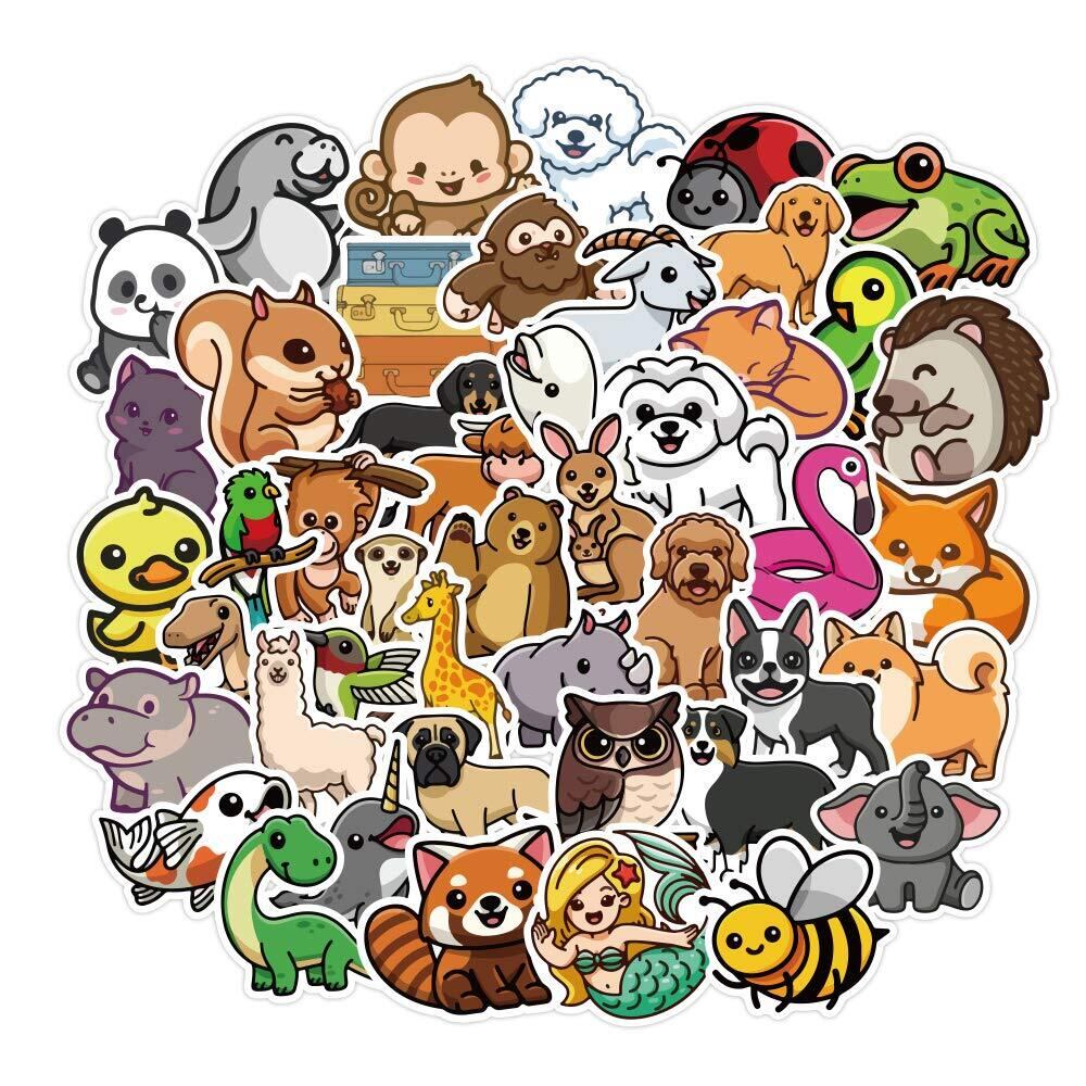 かわいい動物ステッカーセット 50枚入り 動物防水デカール アニマルシールパック スーツケース ノートパソコン バイク ヘルメットなど適用