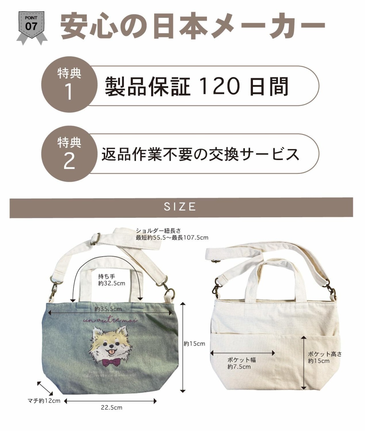 サイズ 約横35.5cm×縦15cm×マチ12cm 素材 帆布