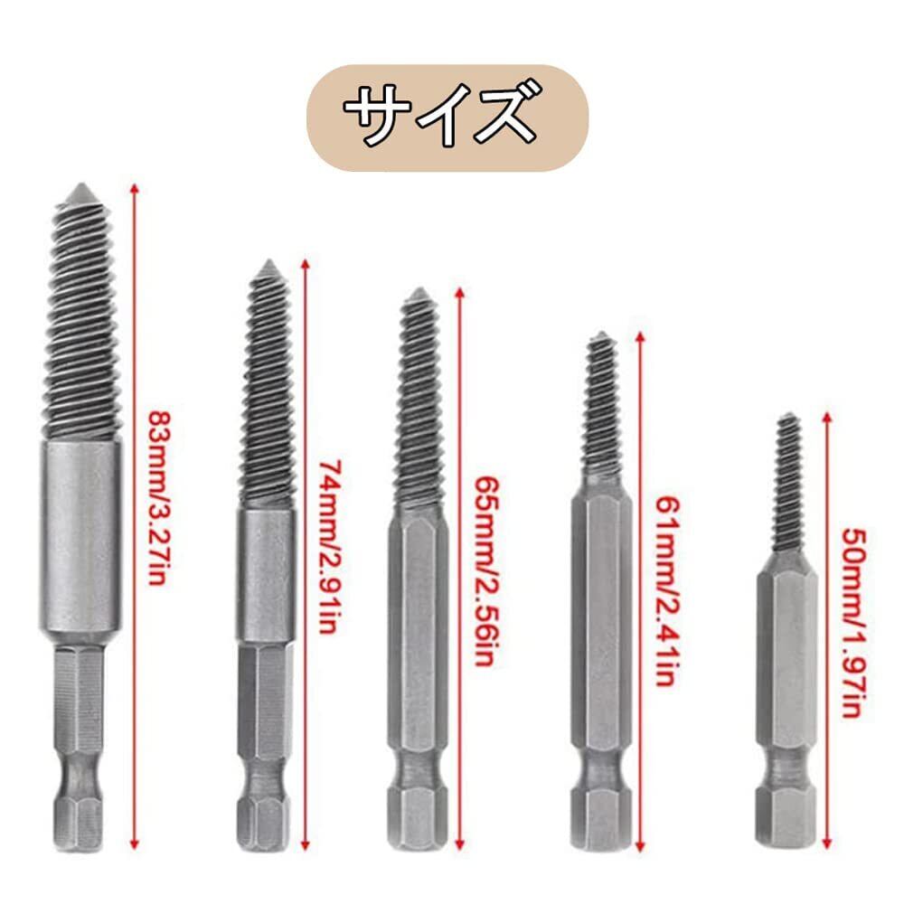 YFFSFDC スクリューエキストラクター 5本セット ネジ抜き 破損し たネジの除去 逆タップ 5-18mm 逆タップセット 六角ハンドル ハンド ツール大工 ビス頭抜く専用工具 | BASE SHOP