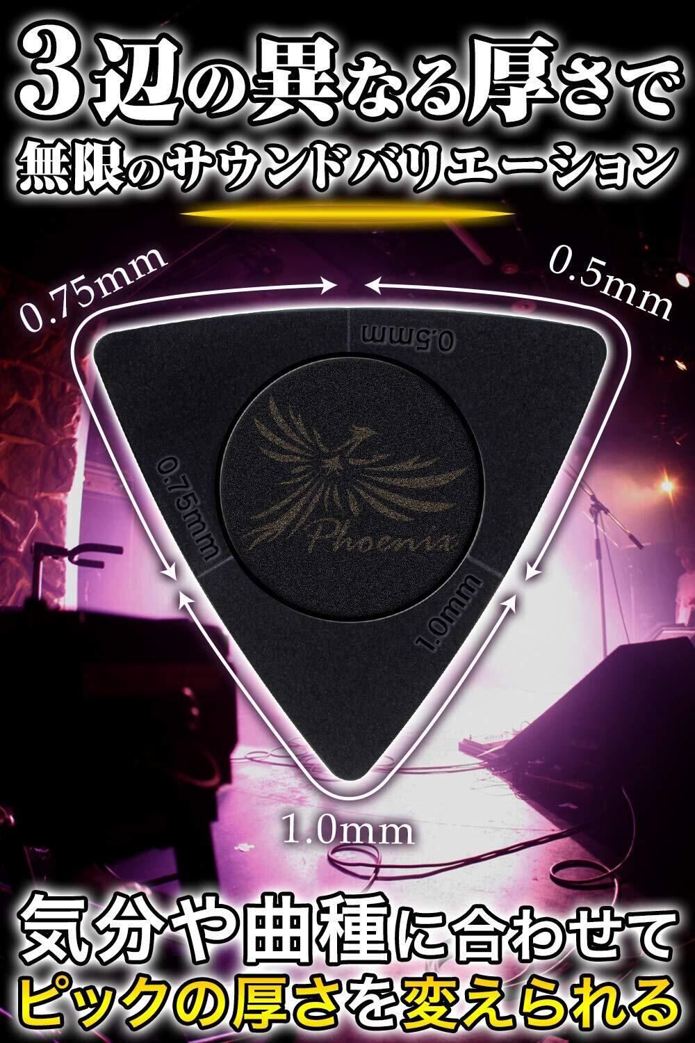 Phoenix ギター ピック 【 3in1 】 10枚セット /3way/3方向3種厚み/滑り止め/エレキギターピック/アコースティックギターピック