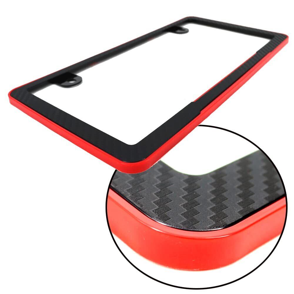 カーボンデザインナンバープレートフレーム 3D織込調カーボンデザイン 自動車汎用ナンバーカバー枠 車検対応 赤