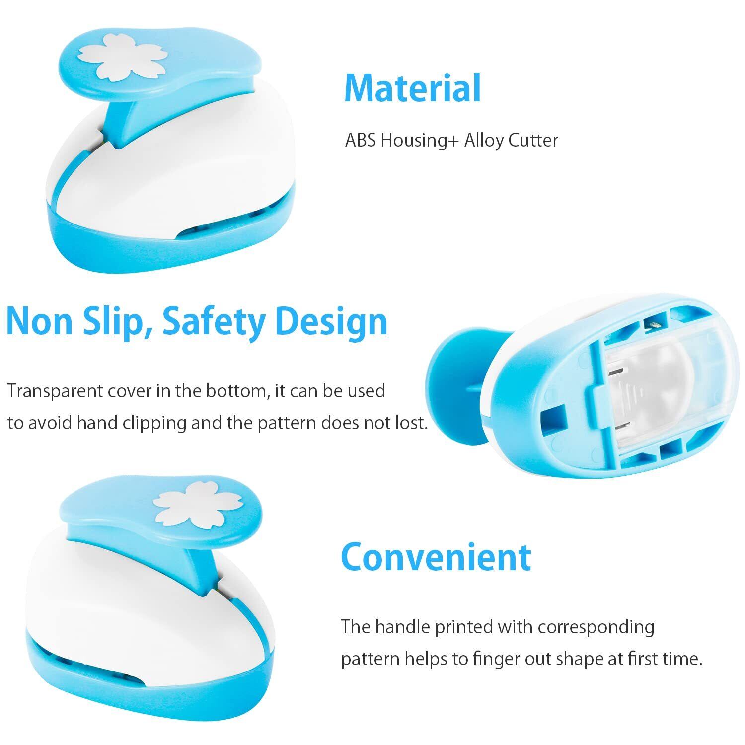 人気な6種の形: 興味深いグラフィックを作成するのに役立つヘルパー。 このクラフトパンチは星、ハート、サークル、クローバー、雪花、桜など6種類形にカットできます。コンビネーションセットがより便利に作れます。
