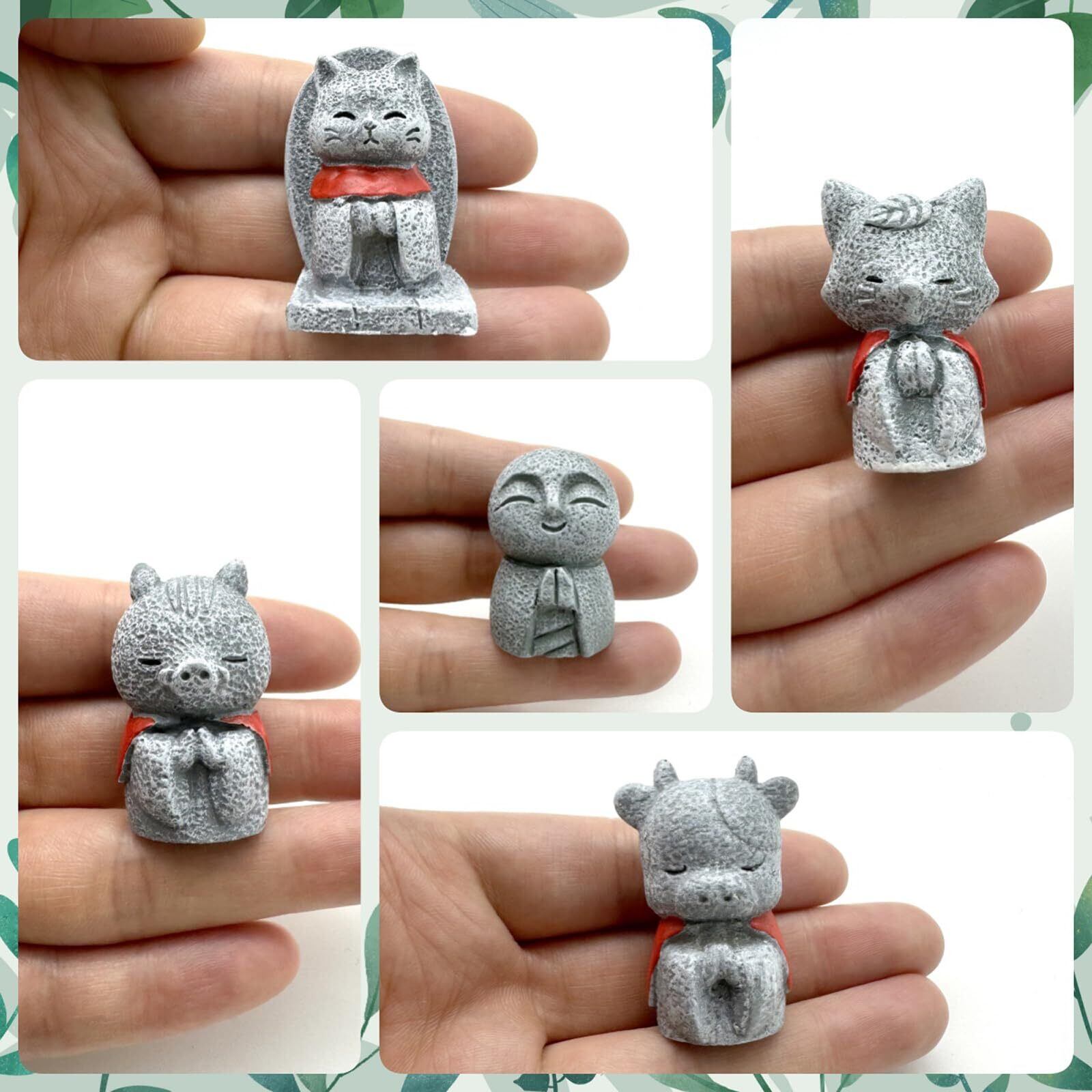 ReemeHi 動物お地蔵さんセット癒し可愛い小型置物祈りお地蔵様おじぞうさま守り神みかげ石 幸せ願い縁の良いおきもお かわいい御影石 神仏像 (蛙)