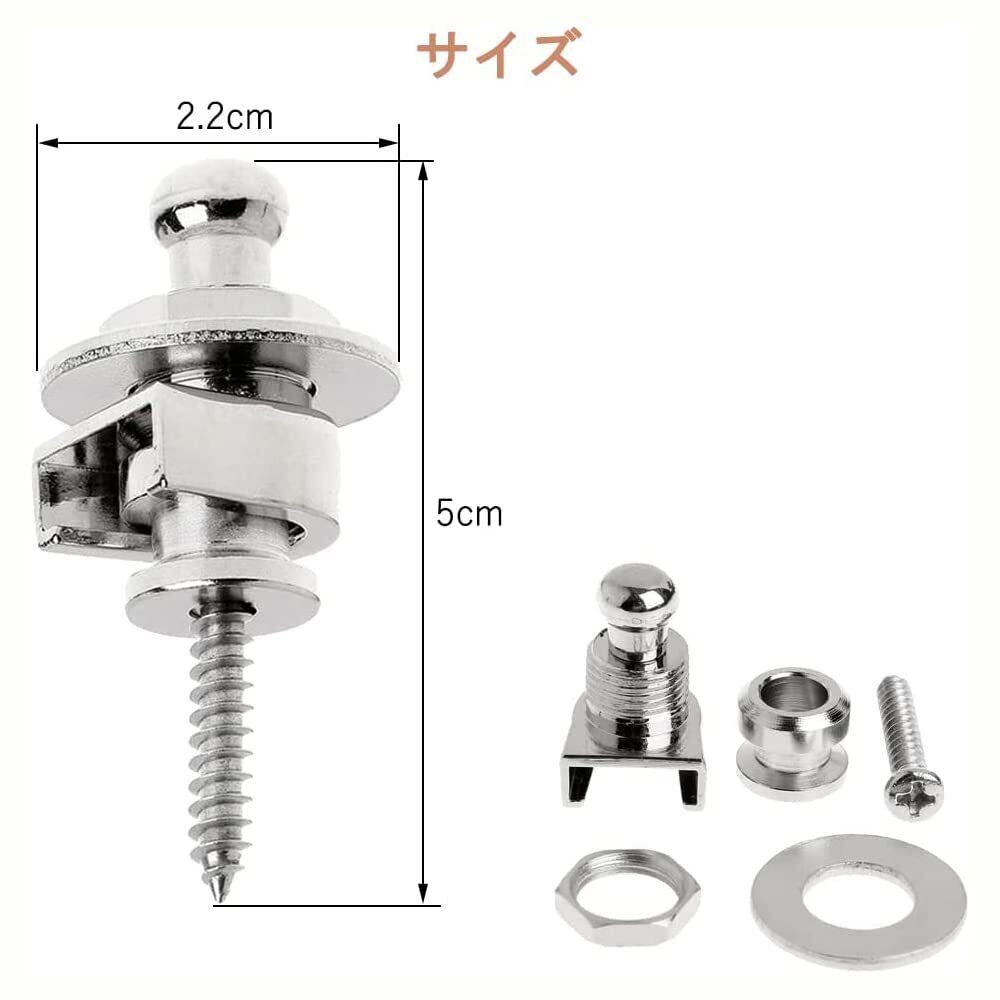 【商品仕様】4個セットギターストラップロック、カラー:シルバー、全長:50mm。