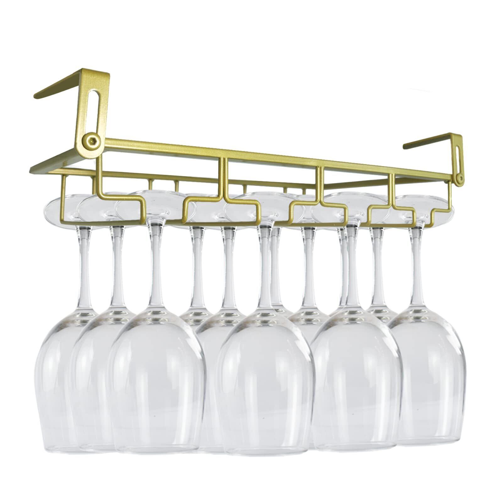 ワイングラスホルダー 吊り下げ 穴あけ 不要 ネジ止め不要厚さ調節可能 キッチン 4列の金色です