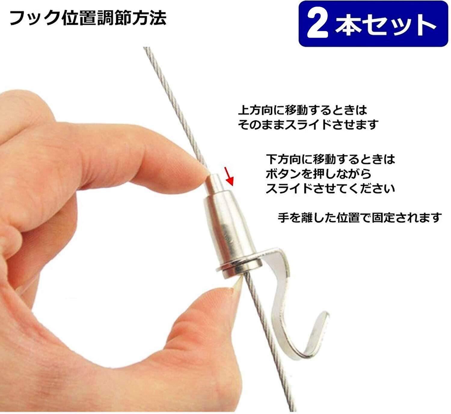 ・フック形状の自在金具とワイヤーがセットになった吊下げ金具の汎用補助ツールになります。軽量用で楽々タイプです。輪っかにフックをつけてレールに取り付けたり、輪っかを既存のフックに取り付けることも可能です。