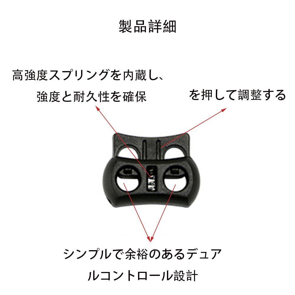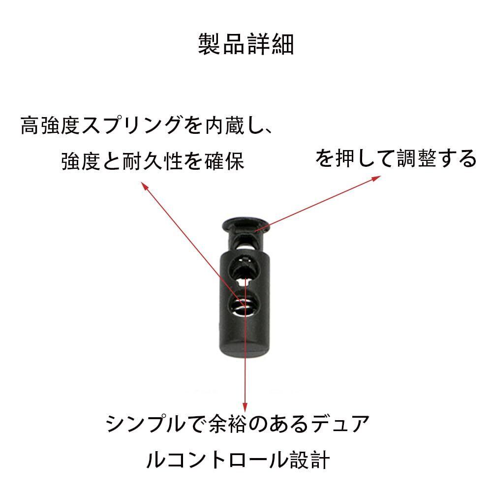 1.【パッケージ内容】丸型スプリングコードストッパー ×40個。 素材:プラスチック。紐を手で結ぶことが面倒と思う人に最適で、蝶結びが上手くできない子供にもお勧めです。 2.【スプリングの設計】高品質のスプリングを使用して、強固なつかみ力を提供し、ゴム紐またはゴムロープをしっかりつかむ。スプリングコードストッパーを使用して、ポーチ、バッグ、衣類、帽子などを結び目なしで安全に閉じることができます。単孔と二孔は、さまざまなニーズを満たすことができます。 3.【使用は極めて簡単】簡単便利 突起部分を押す、離すだけで、紐をゆるめたり絞ったりが簡単にでき、開閉がかなり楽になってとても便利です。紐を手で結ぶことが面倒と思う人に最適で、蝶結びが上手くできない子供にもお勧めです。 4.【コンパクトでスタイリッシュな機能】コードストッパー重量はわずか3gで、丈夫なブラスチック素材プラス強力バネを採用して、壊れにくい耐久性が高いです。丸型で滑らかでバリも少ないです。 5.【幅広い適用性】ストラップ、バッグ、スーツケース、衣類、リュック、巾着袋、スポーツウェア、ジャージ、靴ひも、テントなどで広く使用されています。